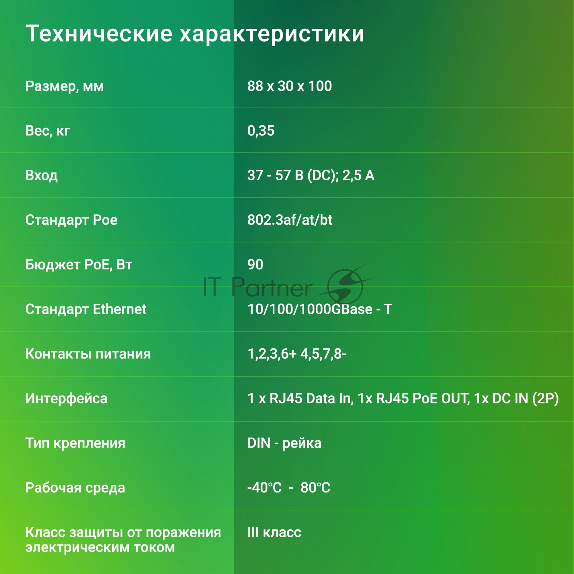 Инжектор PoE Digma DNP90W48GDXM 10/100/1000BASE-T 90Вт 37-57В(DC)