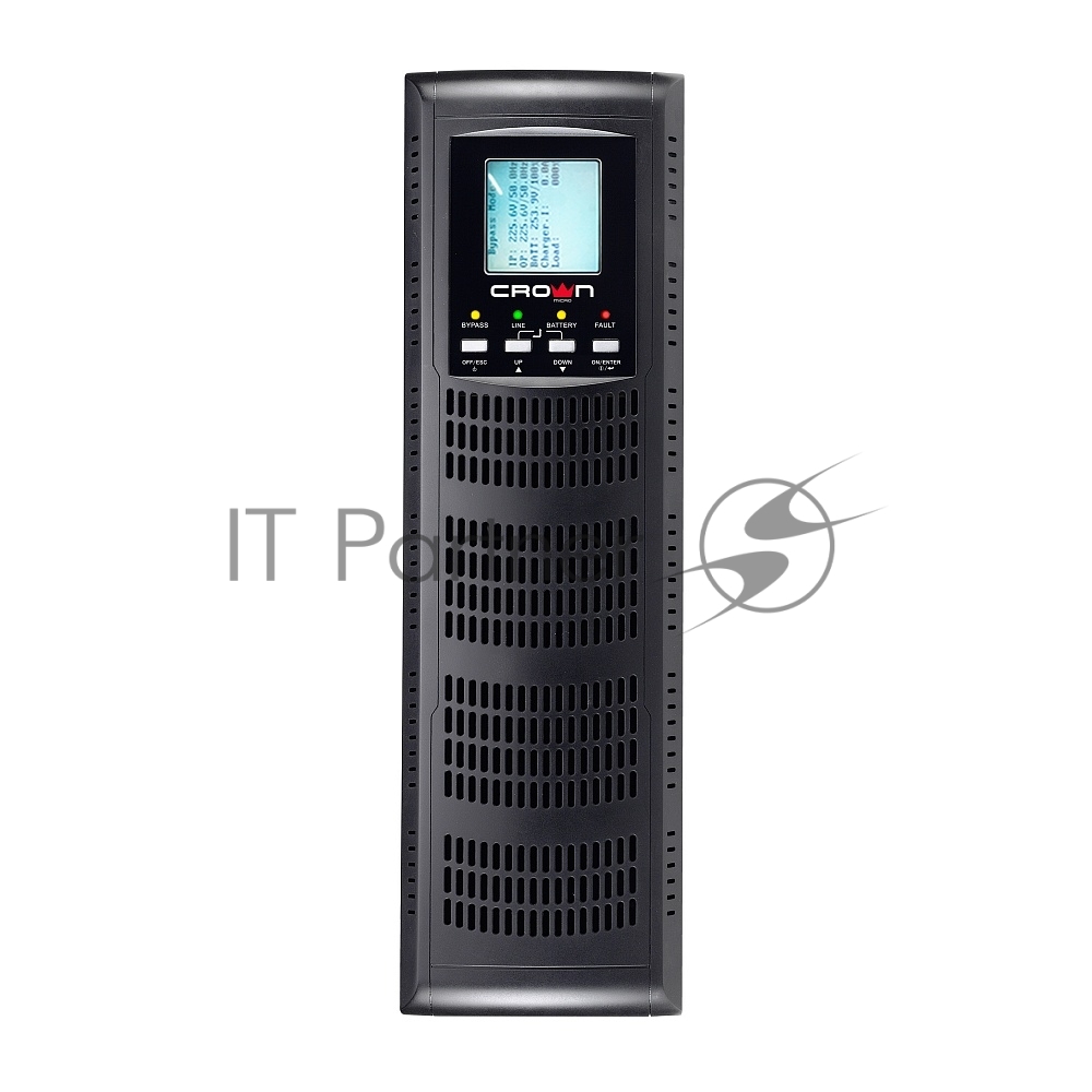 Источник бесперебойного питания CROWN On-Line CMUOA-300X-6K 6000VA/5400W, корпус металл, TOWER&RACK, 3U+3U, АКБ 16*12V/7AH, PF-0.9, AVR 110-300V, порт USB+RS-232, EPO, розетки — клемная колодка (Ph+N+GND), входной кабель 2,5 м, вентилятор охлаждения, автомат, слот для SNMP, порт для доп. батарейных кабинетов, работа в параллель, ПО