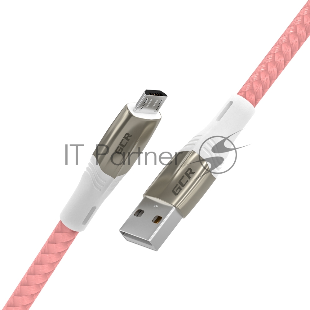Кабель 1.7m GCR MicroUSB series MERCEDES, PINK NYLON, супер быстрая зарядка, 28/22 AWG, GCR-51955