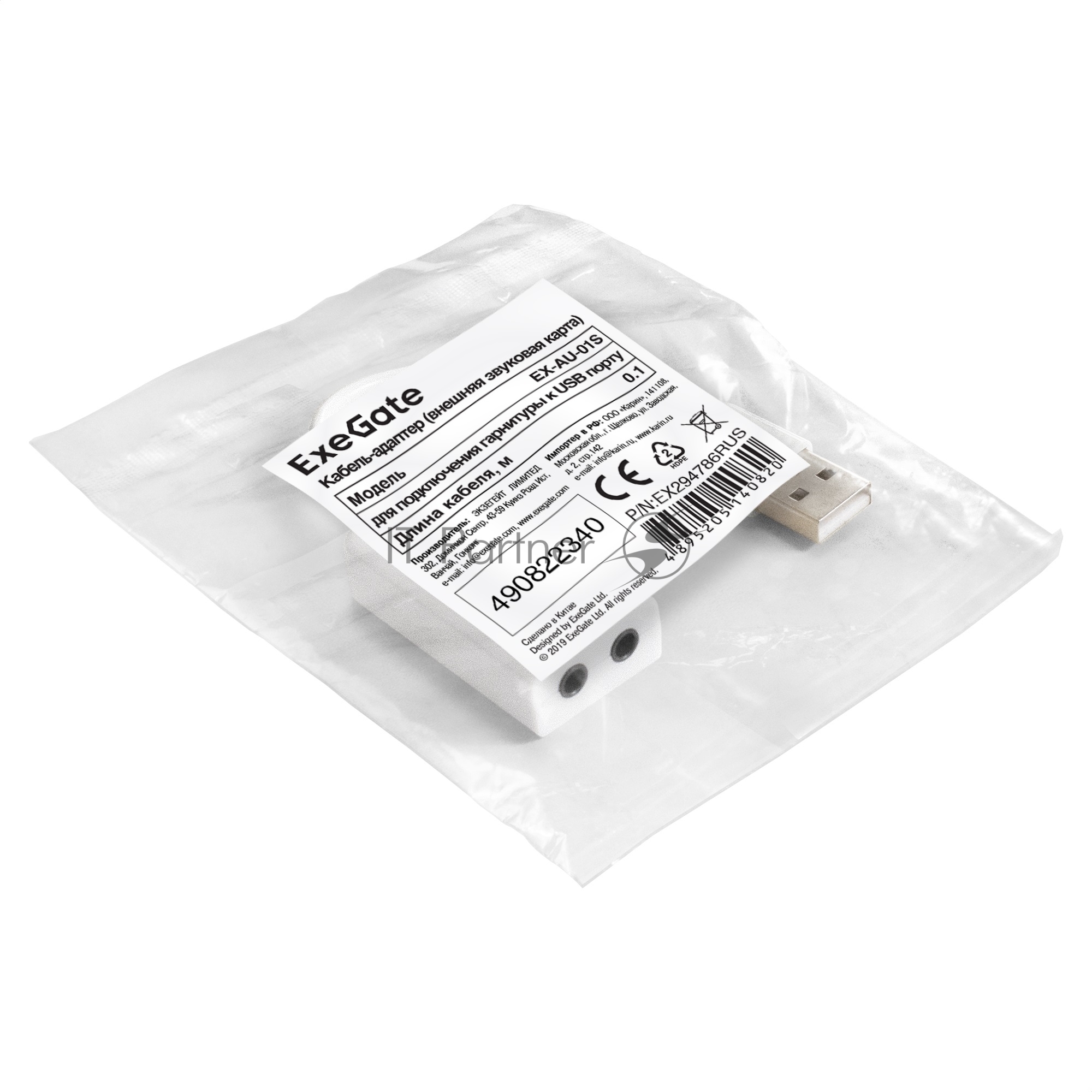 Кабель-адаптер (внешняя звуковая карта) ExeGate (EX-AU-01S) для подключения гарнитуры к USB порту, 0,1м