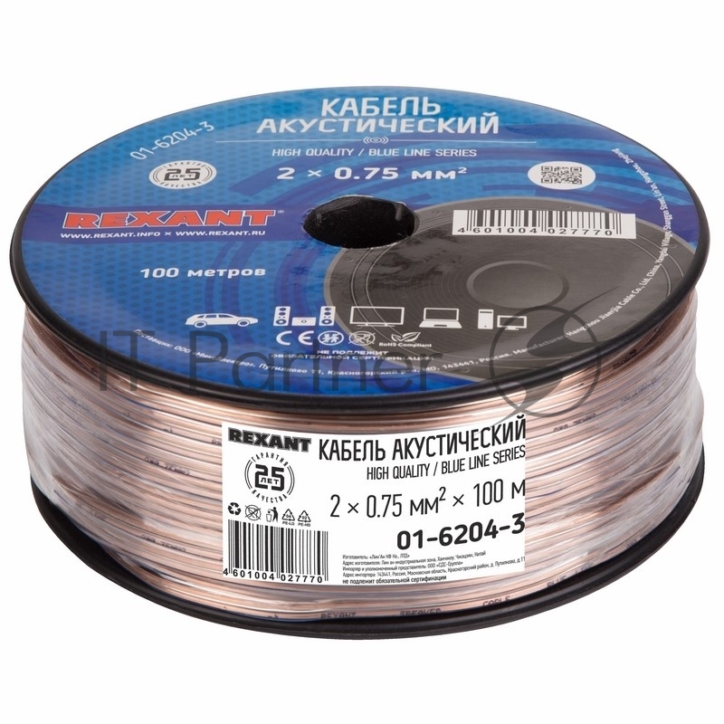 Кабель акустический, 2х0.75 мм?, прозрачный BLUELINE, 100 м. | 01-6204-3 | REXANT
