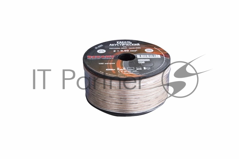 Кабель акустический REXANT 2х0,50 мм², прозрачный SILICON, бухта 100 м
