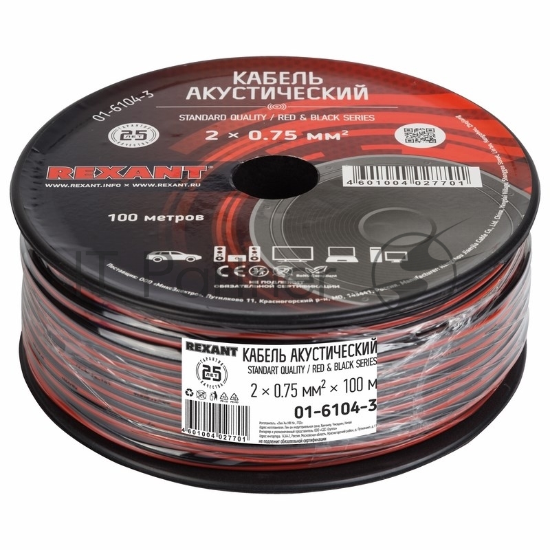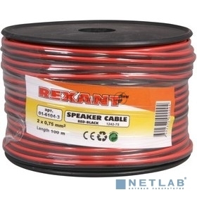 Кабель акустический REXANT 2х0,75 мм², красно-черный, бухта 100 м