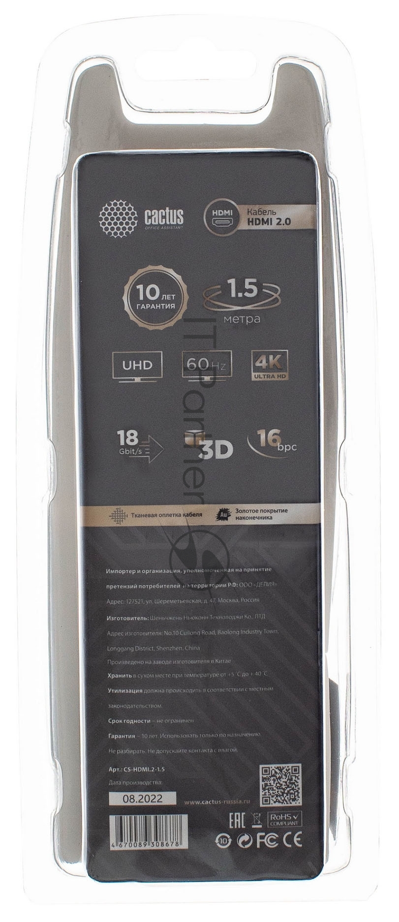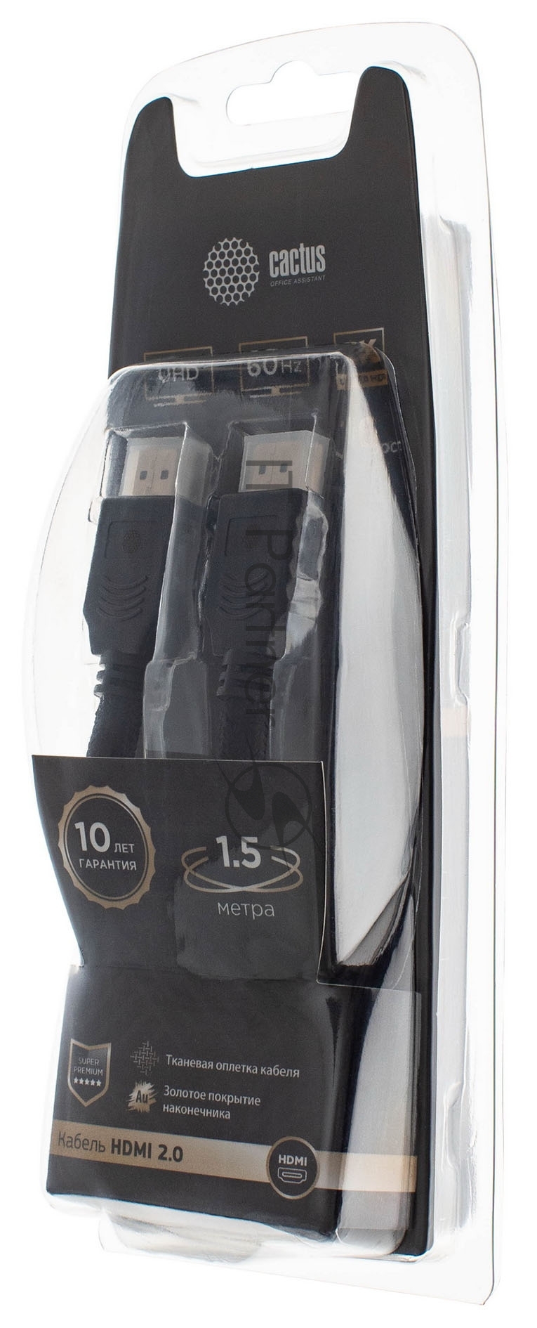 Кабель аудио-видео Cactus CS-HDMI.2-1.5 HDMI (m)/HDMI (m) 1.5м. Позолоченные контакты черный