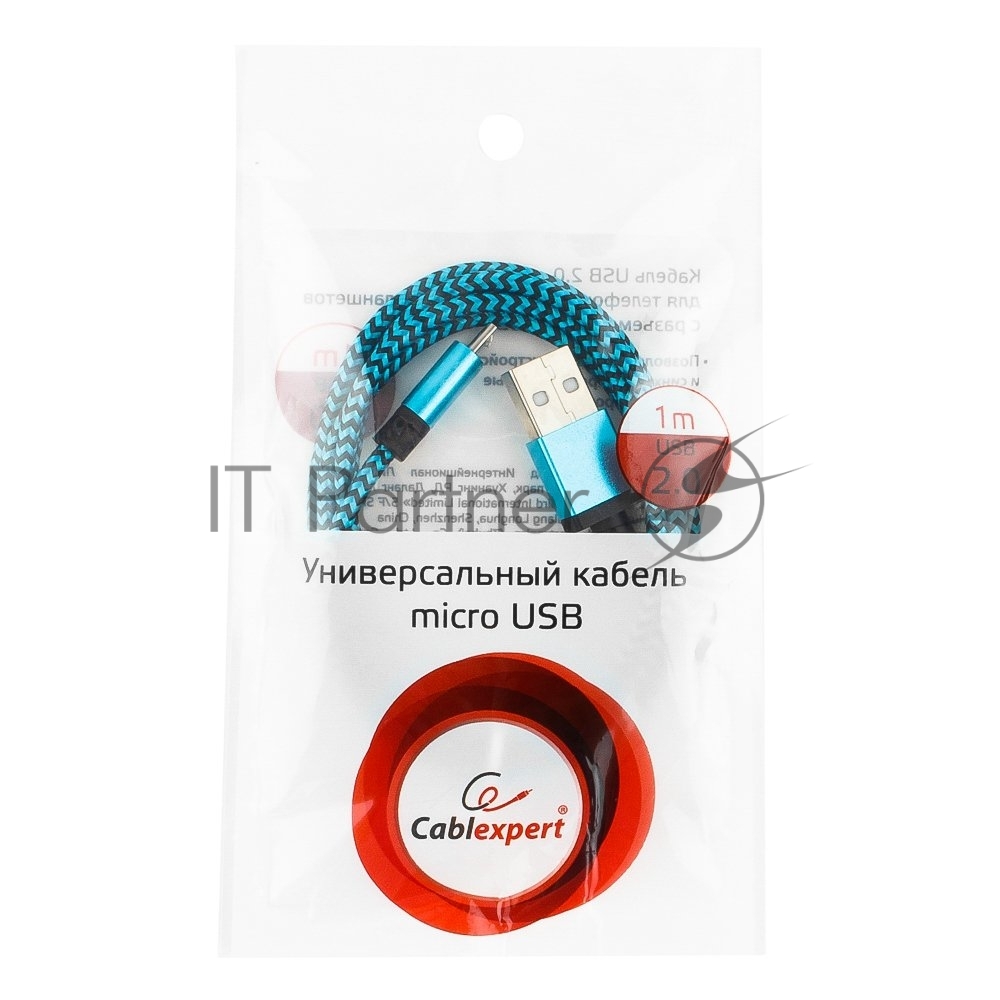 Кабель Gembird USB 2.0 Cablexpert CC-mUSB2bl1m, AM/microBM 5P, 1м, нейлоновая оплетка, алюминиевые разъемы, синий, пакет