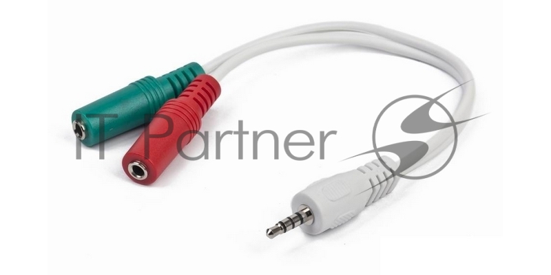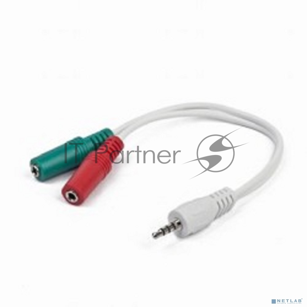 Кабель Кабель аудио сигнала Gembird, джек3.5 4pin-)джек3.5 стерео + 3.5 микрофон моно, длина 20см, белый (CCA-417W)