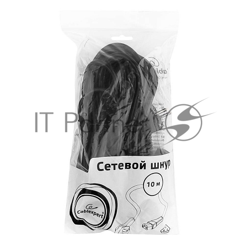 Кабель Кабель питания Gembird 10.0м, VDE(0.75мм), черный, с зазем., пакет PC-186-VDE-10M
