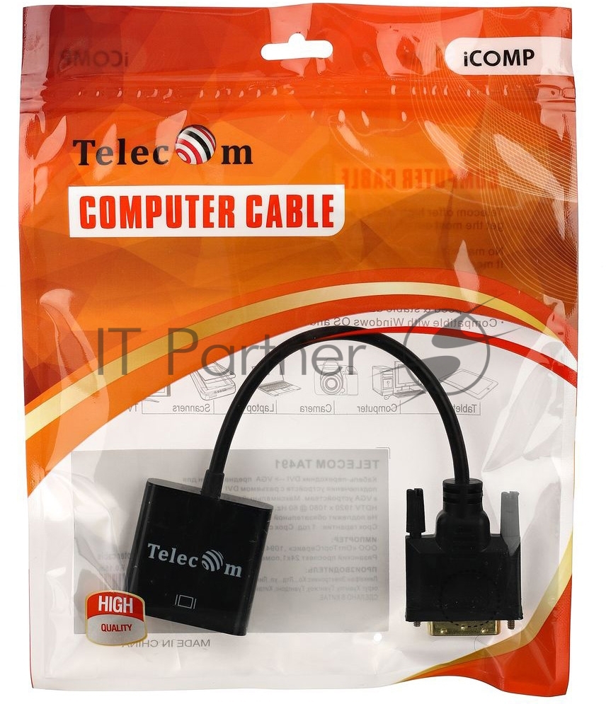 Кабель-переходник VCOM DVI-D 25M —) VGA 15F Telecom (TA491) Кабель-переходник DVI-D 25M —) VGA 15F Telecom (TA491)
