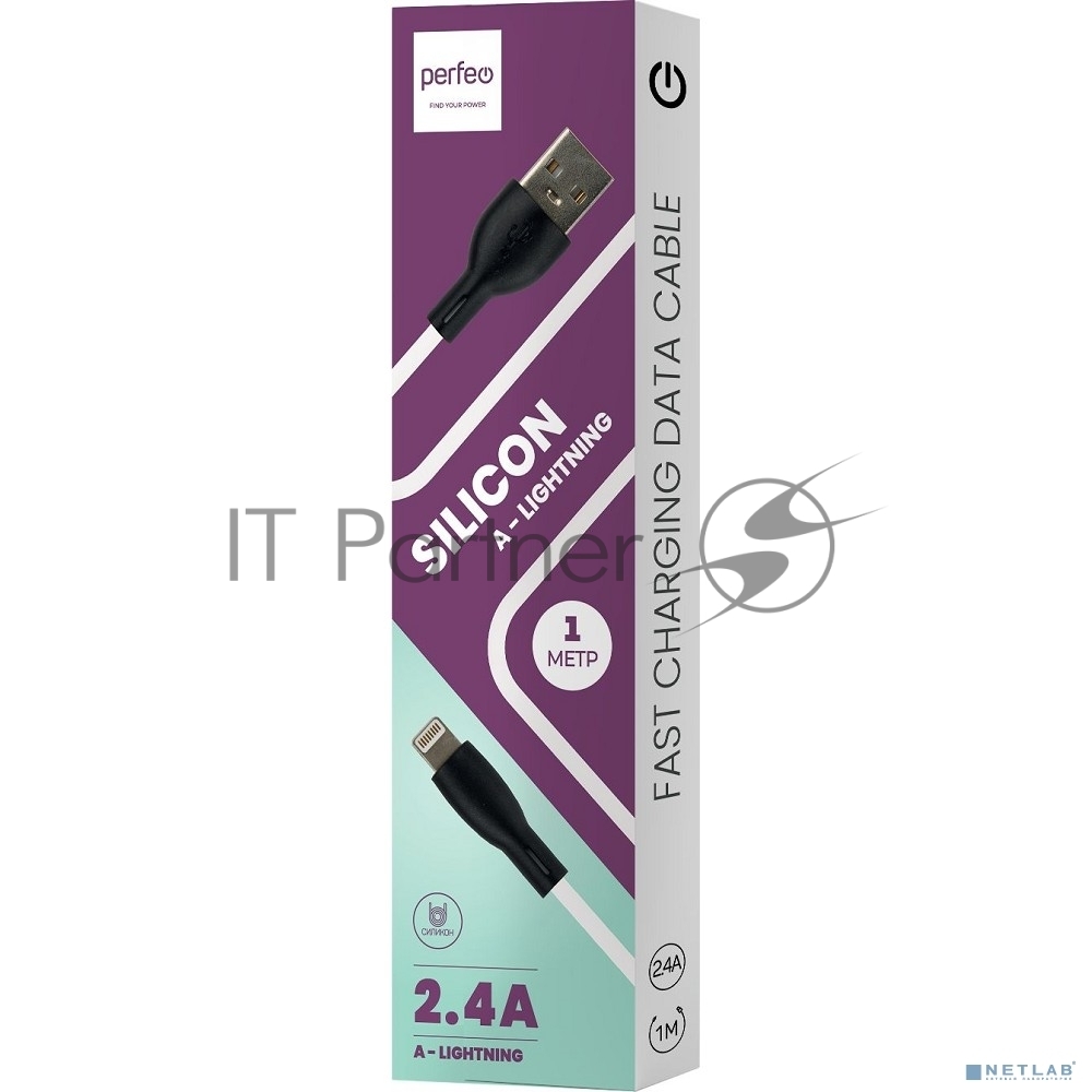 Кабель PERFEO USB A вилка — Lightning вилка, 2.4A, белый, силикон, длина 1 м., SILICON (I4337)