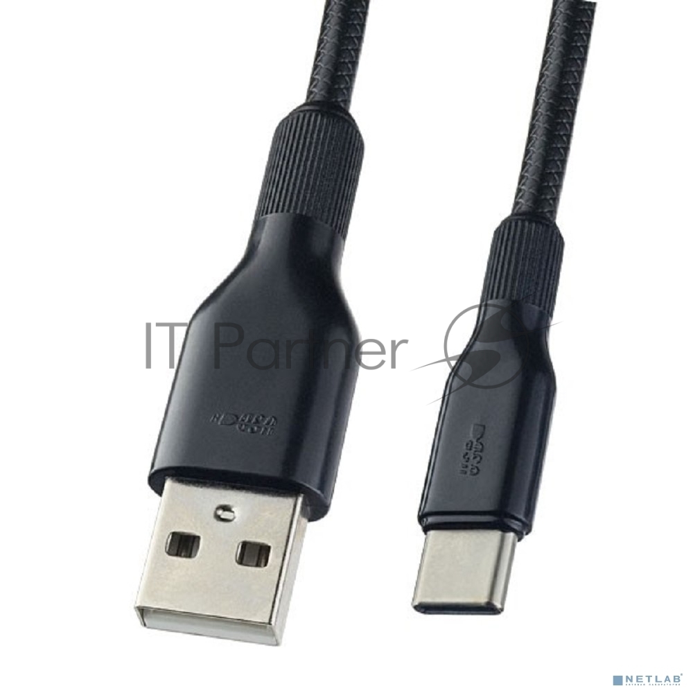 Кабель PERFEO USB2.0 A вилка — USB Type-C вилка, силикон, черный, длина 1 м. (U4907)