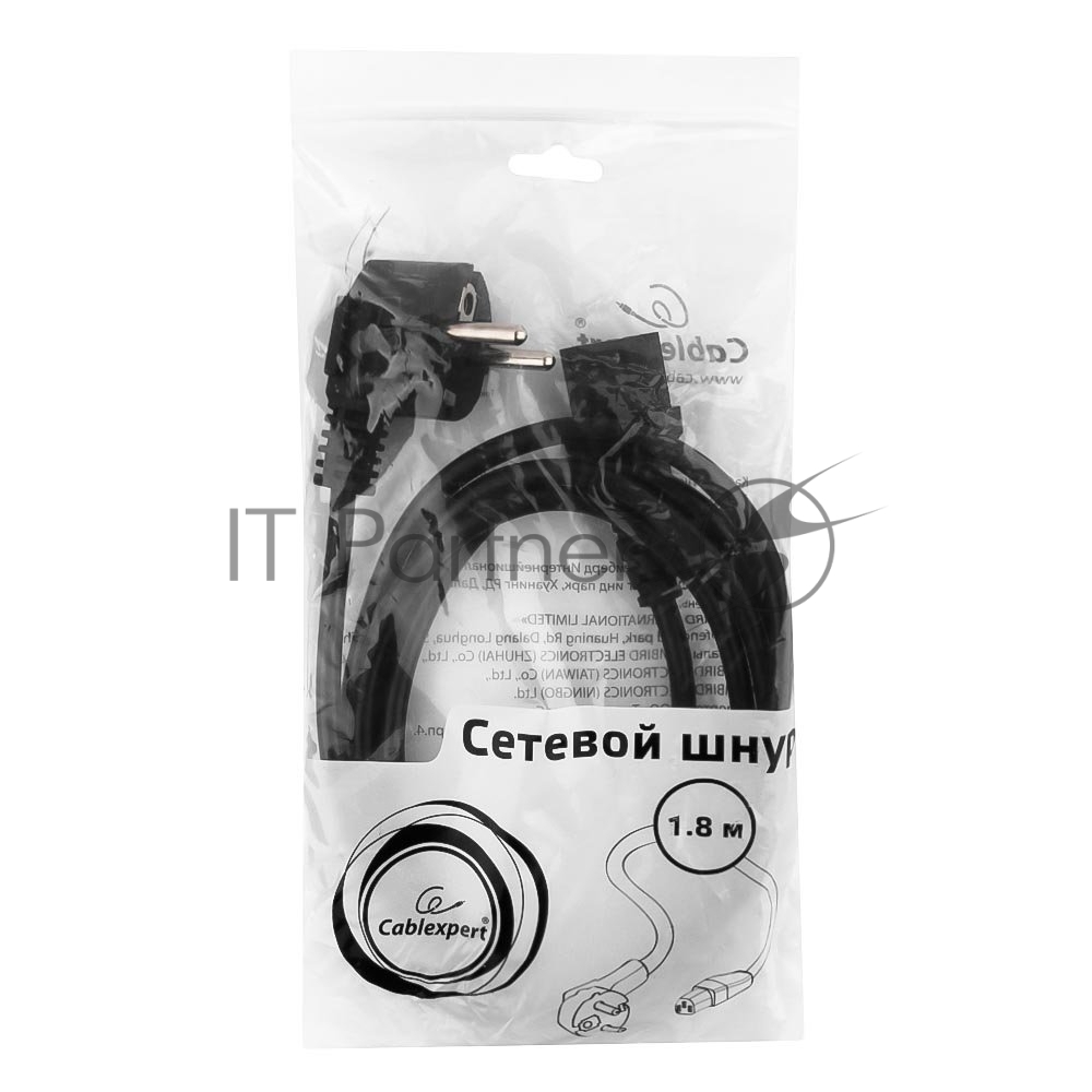 Кабель питания Cord Power Gembird/Cablexpert PC-186 / 1.8м, Schuko- C13, 6А, черный, с зазем.