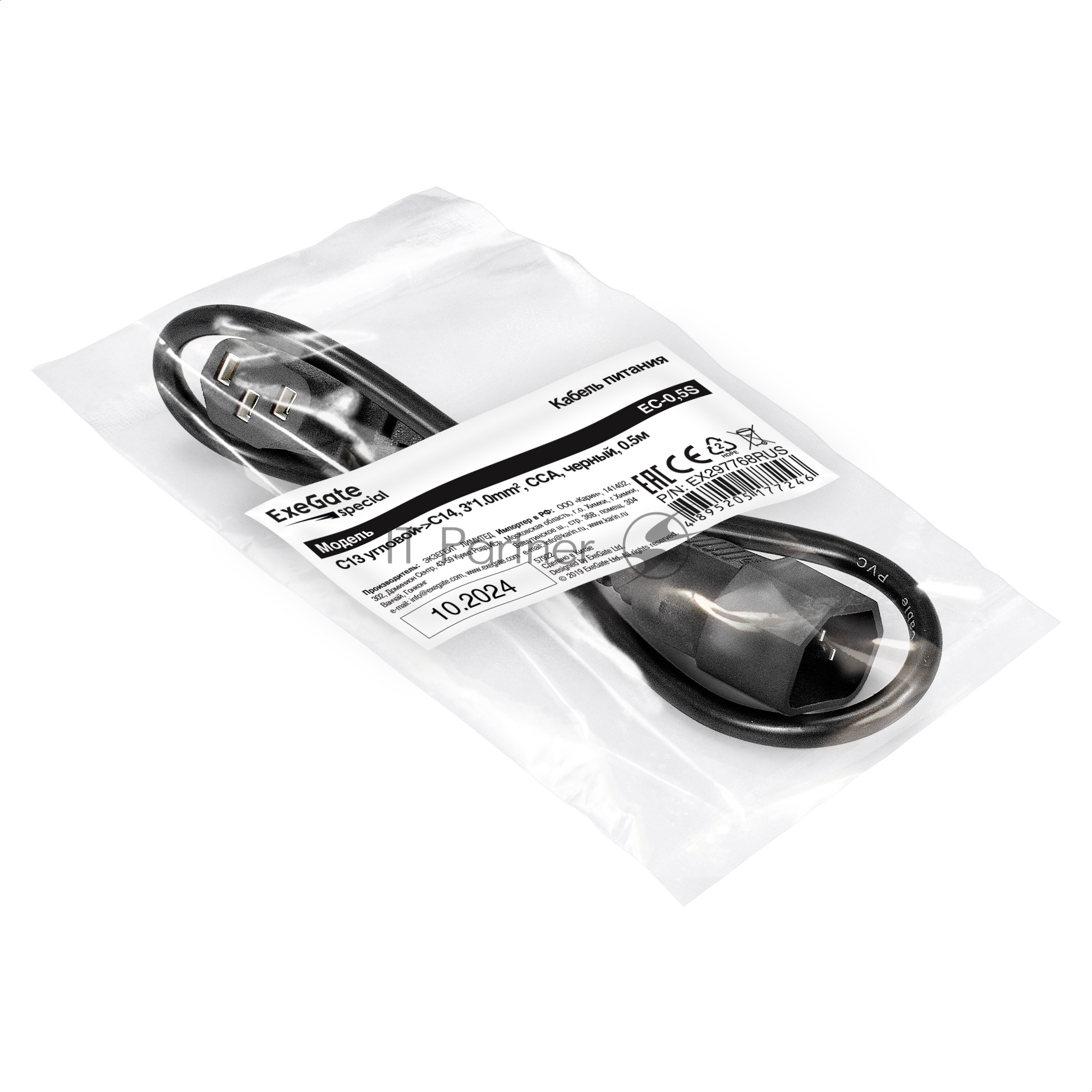 Кабель питания ExeGate Special EC-0,5S (C13 угловой-)C14, 3*1.0mm2, CCA, черный, 0.5м)