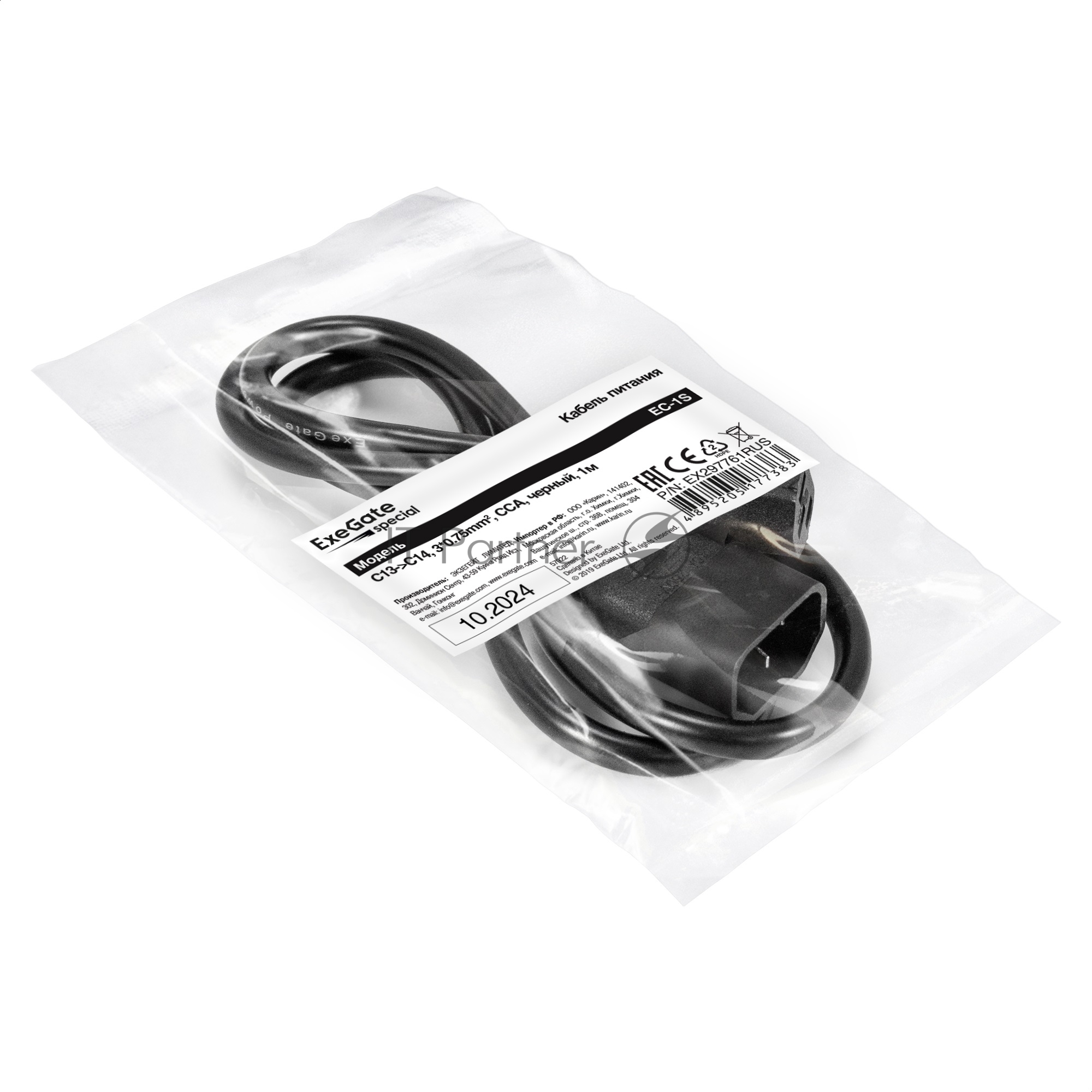 Кабель питания ExeGate Special EC-1S (C13-)C14, 3*0.75mm2, CCA, черный, 1м)