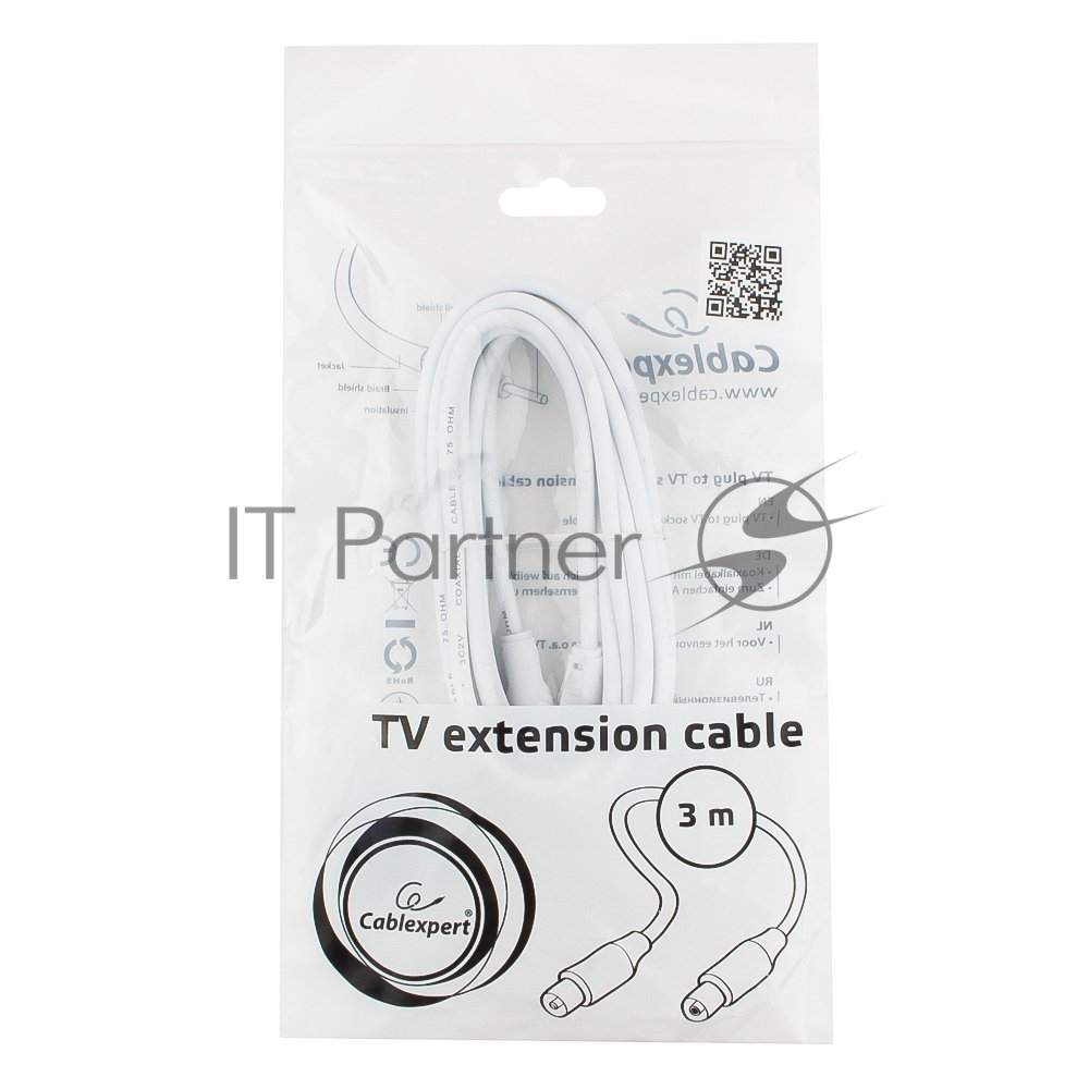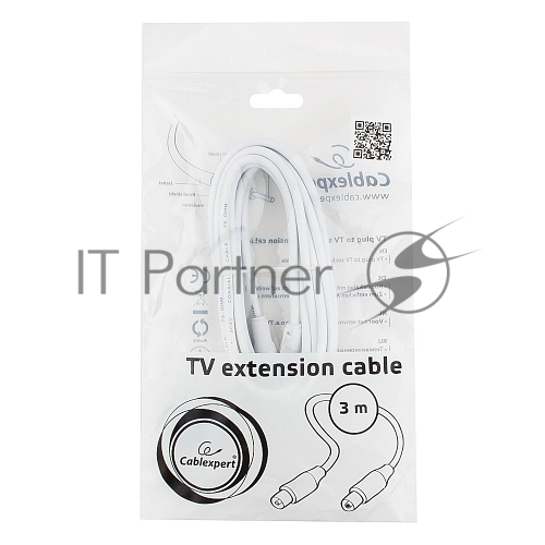 Кабель телевизионный Cablexpert CCV-515-W-3M, Coaxial M/F, белый, 3м