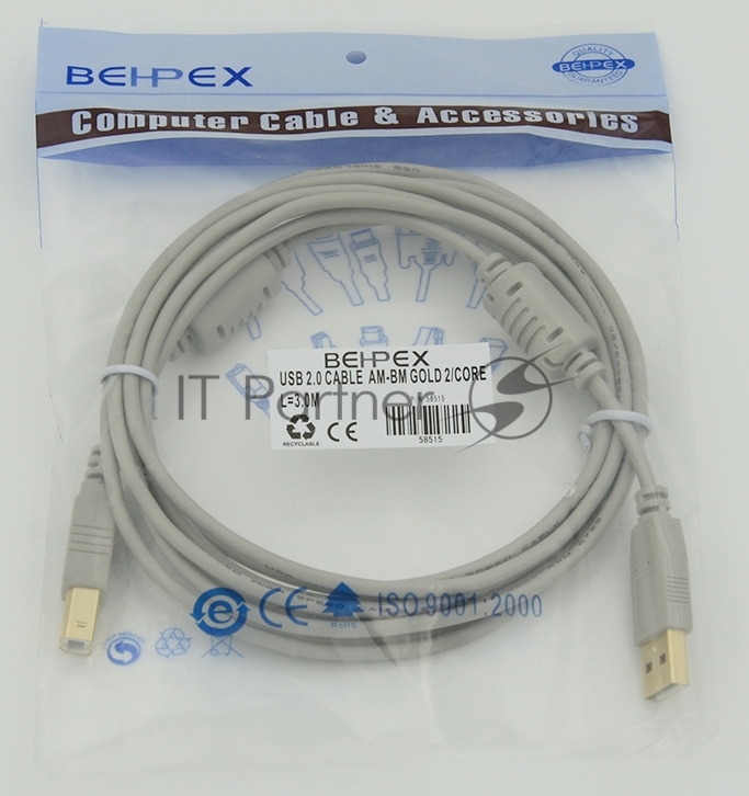 Кабель USB 2.0 PRO Am-Bm /Экран, покрытие Gold flash, 2x ферритовых фильтра 3м