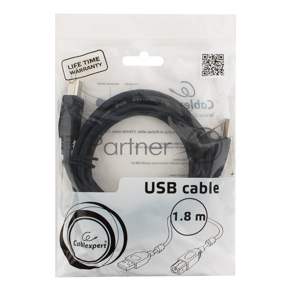 Кабель USB 2.0 Pro Cablexpert CCF2-USB2-AMBM-6, AM/BM, 1.8м, экран, 2феррит.кольца, черный, пакет