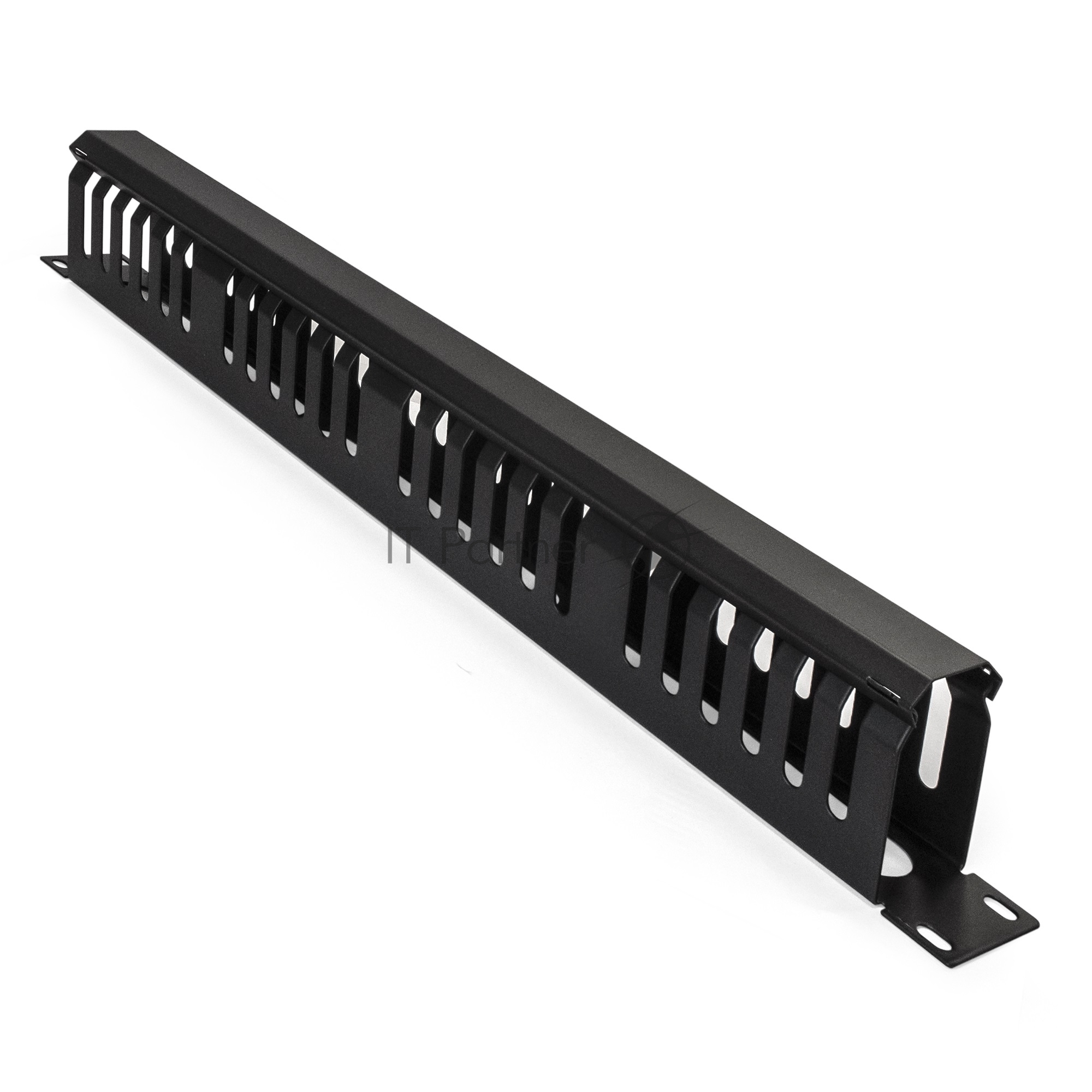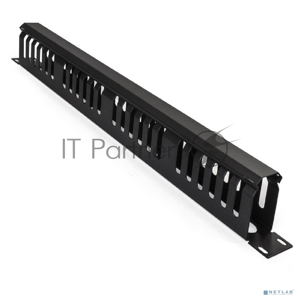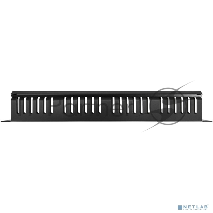 Кабельный органайзер ExeGate CM19-1U-24M-CV (горизонтальный 19″ 1U, металлический, 2 окна в основании профиля, гребенка на 24 выреза, глубина 45mm, с металлической крышкой на защелках, цвет черный, RTL)