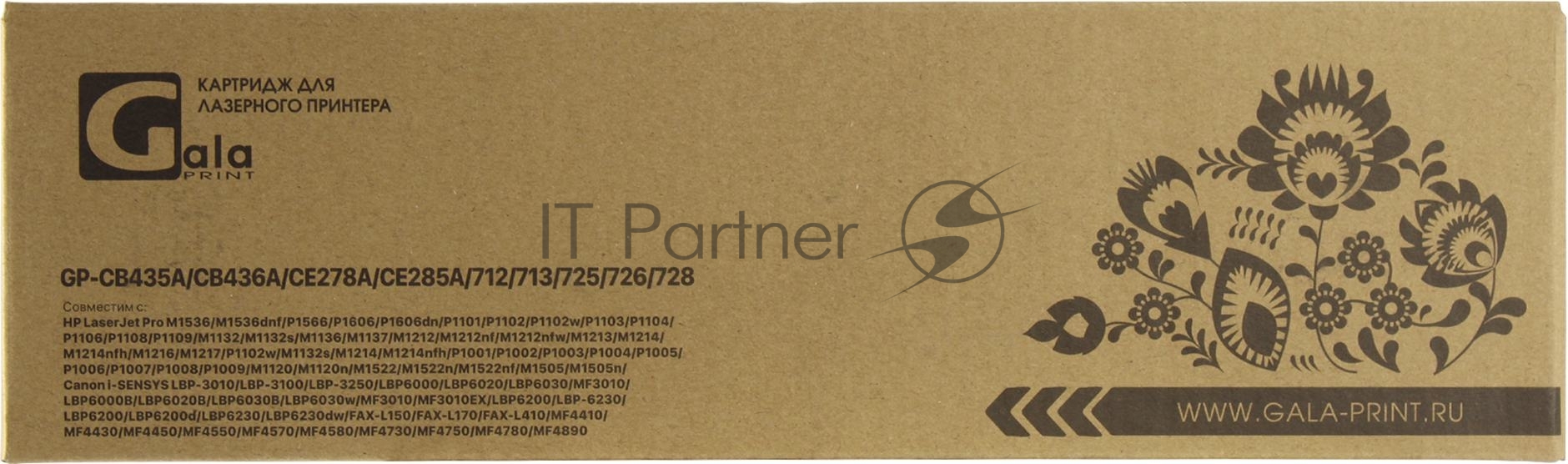 Картридж GalaPrint GP-CE278A/CE285A/CB435A/CB436A/712/725/726/728 (№78A №85A №35A №36A) чёрный (2000 стр) для HP LaserJet Pro M1536/M1536dnf/P1566/P1606/P1606dn/P1101/P1102/P1102w/P1103/P1104/P1106/P1108/P1109/M1132/M1132s/M1136/M1137/M1212/M1212nf/M1212nfw/M1213/M1214/M1214nfh/M1216/M1217/P1102w/M1132s/M1214/M1214nfh/LaserJet P1001/P1002/P1003/P1004/P1005/P1006/P1007/P1008/P1009/M1120/M1120n/M1522/M1522n/M1522nf/M1505/M1505n/Canon i-SENSYS LBP6000/LBP6020/LBP6030/MF3010/LBP6000B/LBP6020B/LBP6030B/LBP6030w/MF3010/MF3010EX/LBP6200/LBP6230/LBP6200d/LBP6230dw/FAX-L150/FAX-L170/FAX-L410/MF4410/MF4430/MF4450/MF4550/MF4570/MF4580/MF4730/MF4750/MF4780/MF4890