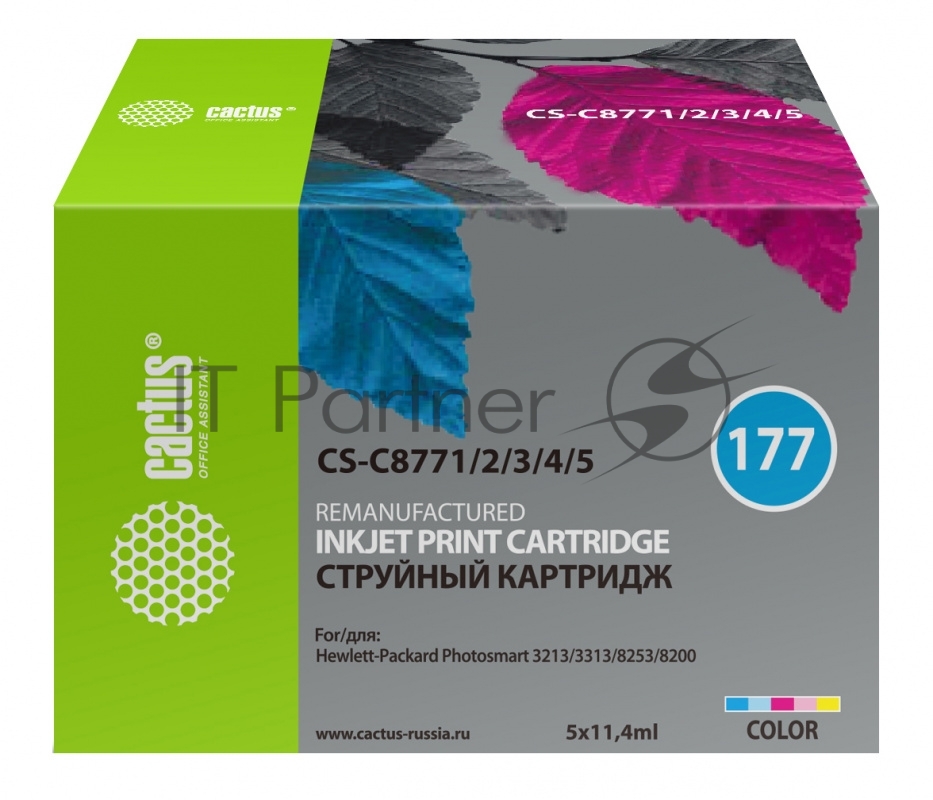 Картридж струйный Cactus CS-C8771/2/3/4/5 №177 многоцветный (11.4 мл.) для HP PS 2113/3313/8253/8200