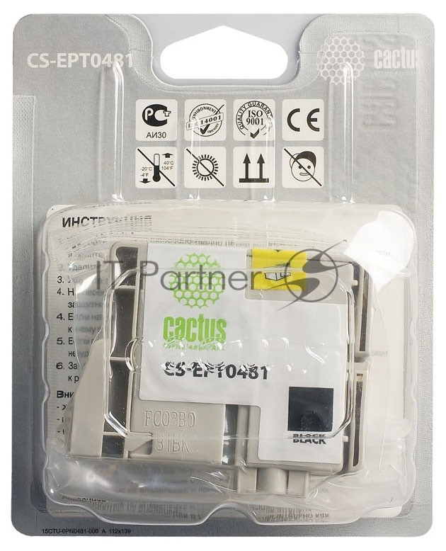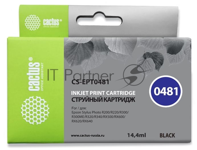 Картридж струйный Cactus CS-EPT0481 черный (14,4 мл) для Epson Photo R200/R220/R300/R320/R340/RX500/RX600/RX620/RX640