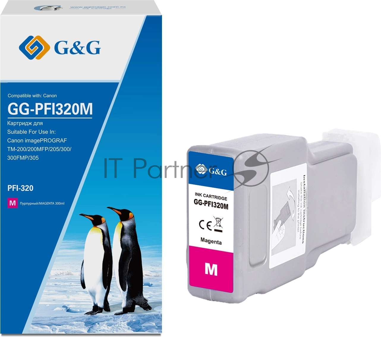 Картридж струйный G&G GG-PFI320M (PFI-320M) пурпурный (300 мл) для Canon imagePROGRAF TM-200/200MFP/205/300/300MFP/305