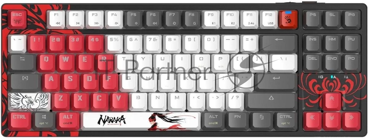 Клавиатура A4Tech Bloody WS87 Naraka беспроводная USB, Bluetooth/Радиоканал черный/красный