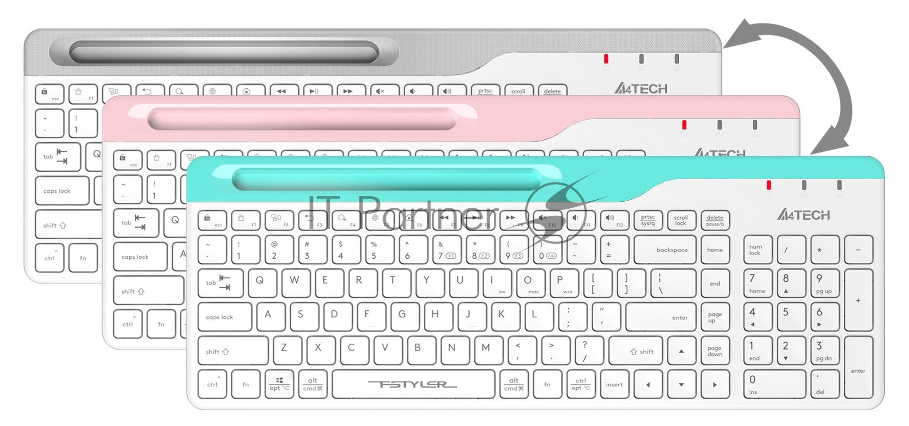 Клавиатура A4Tech Fstyler FBK25 беспроводная, USB, Bluetooth/Радиоканал, белый/серый