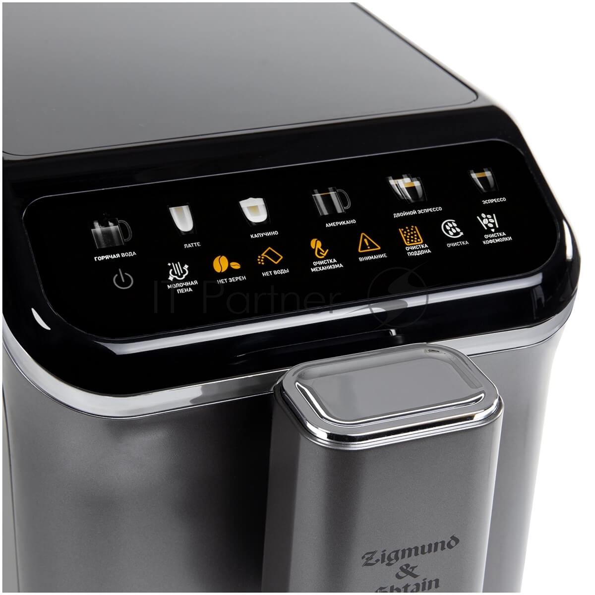 Кофемашина автоматическая Zigmund & Shtain ZACM-2000 серый металлик, исп. кофе — зерновой, 1.5 л, 1350 Вт, 20 бар