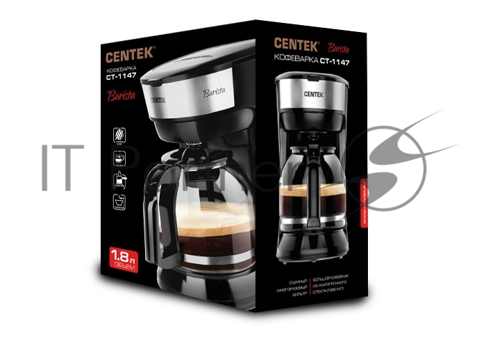 Кофеварка капельная Centek CT-1147 Steel, исп. кофе — молотый, 1.8 л, 900 Вт.