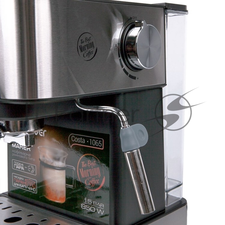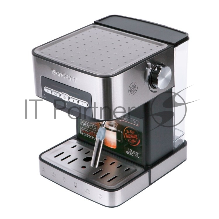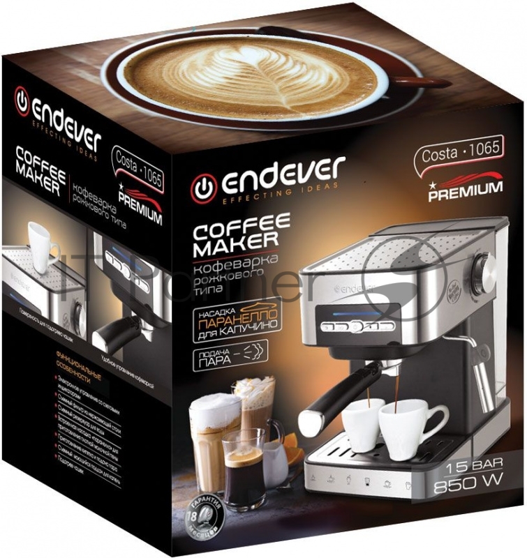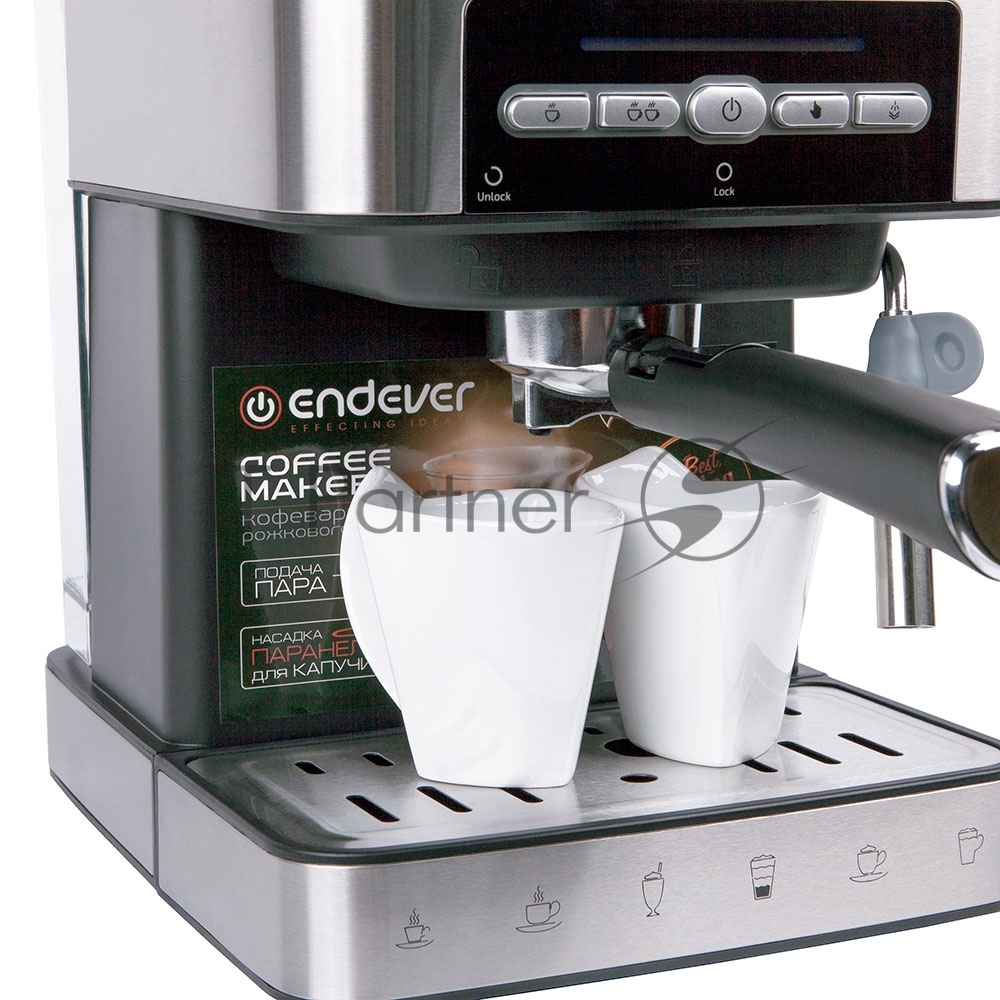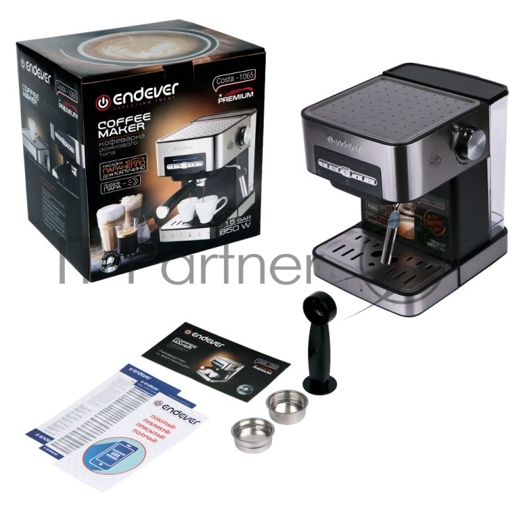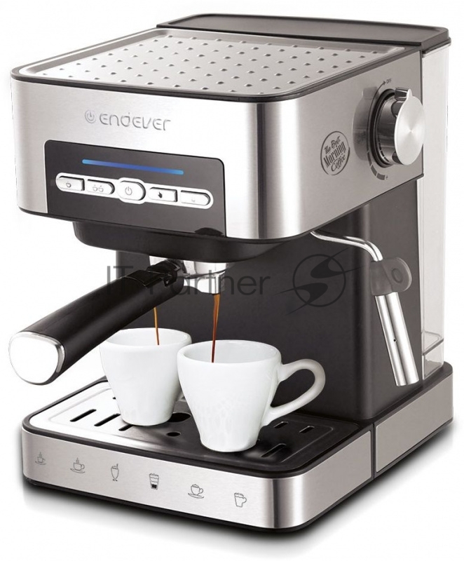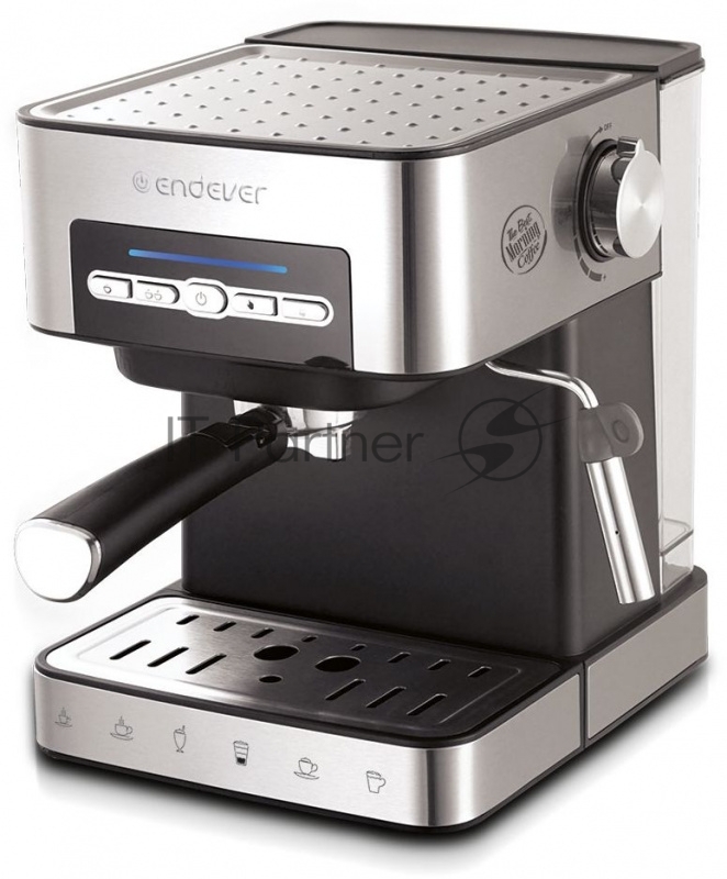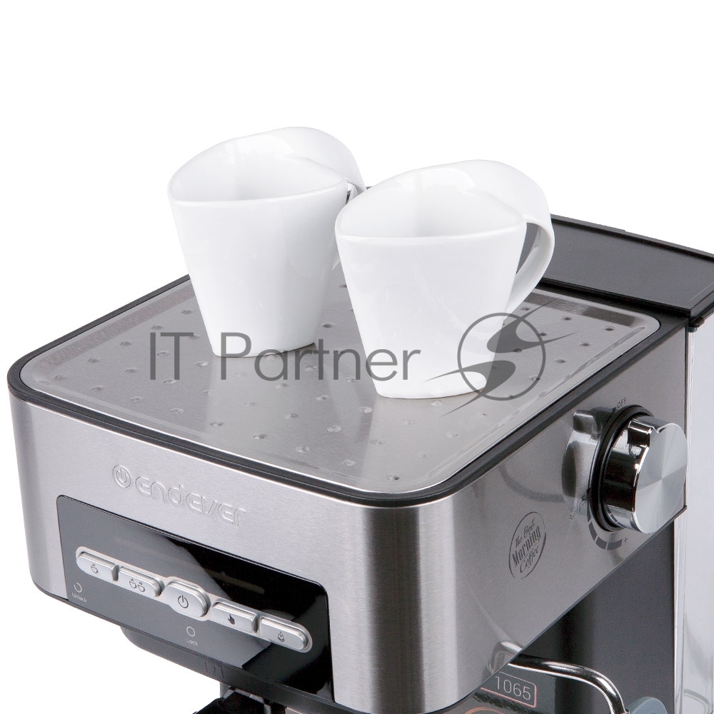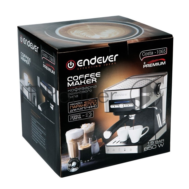 Kофеварка рожковая Endever Costa-1065 серебристый, исп. кофе — молотый, 1.6 л, 1000 Вт, 20 бар.