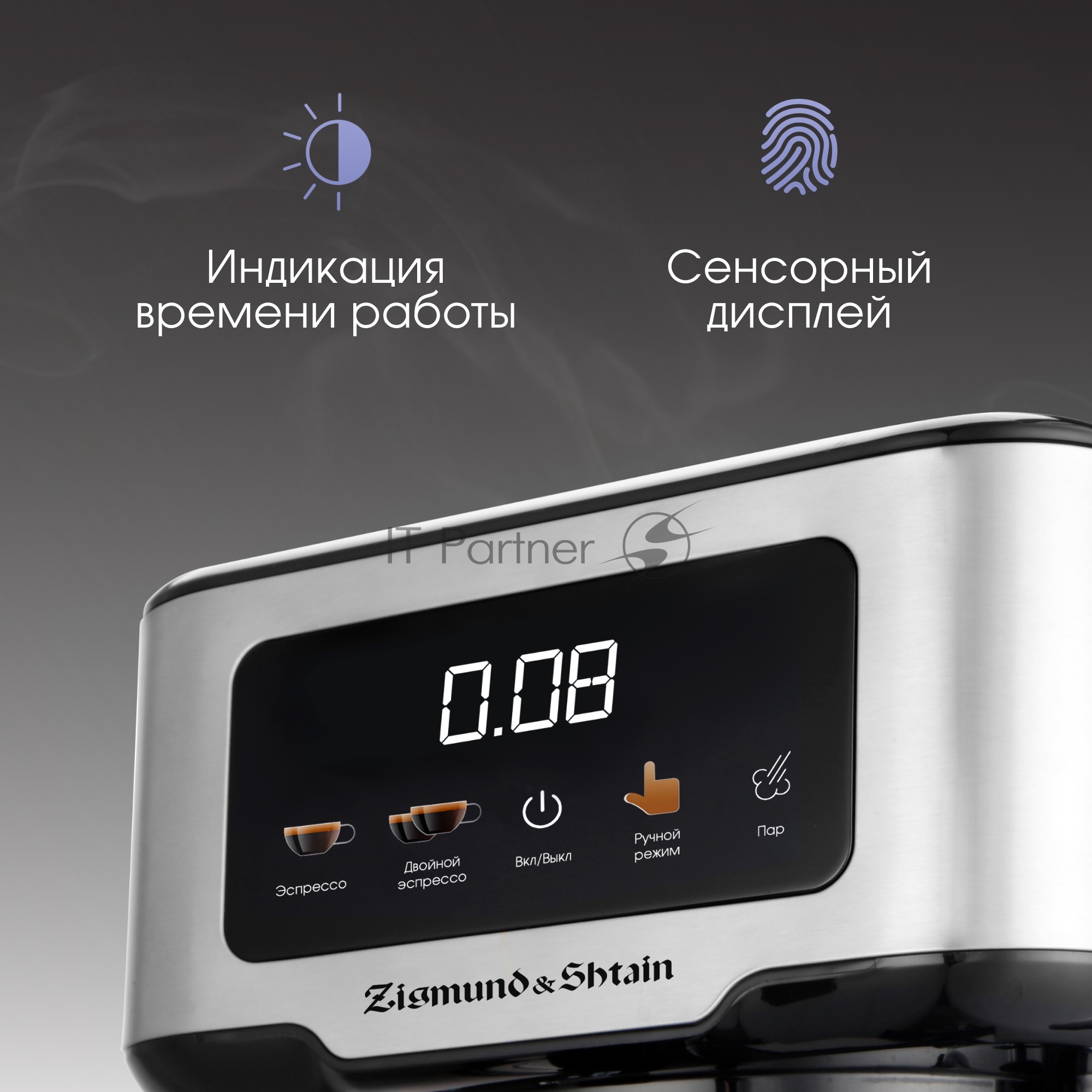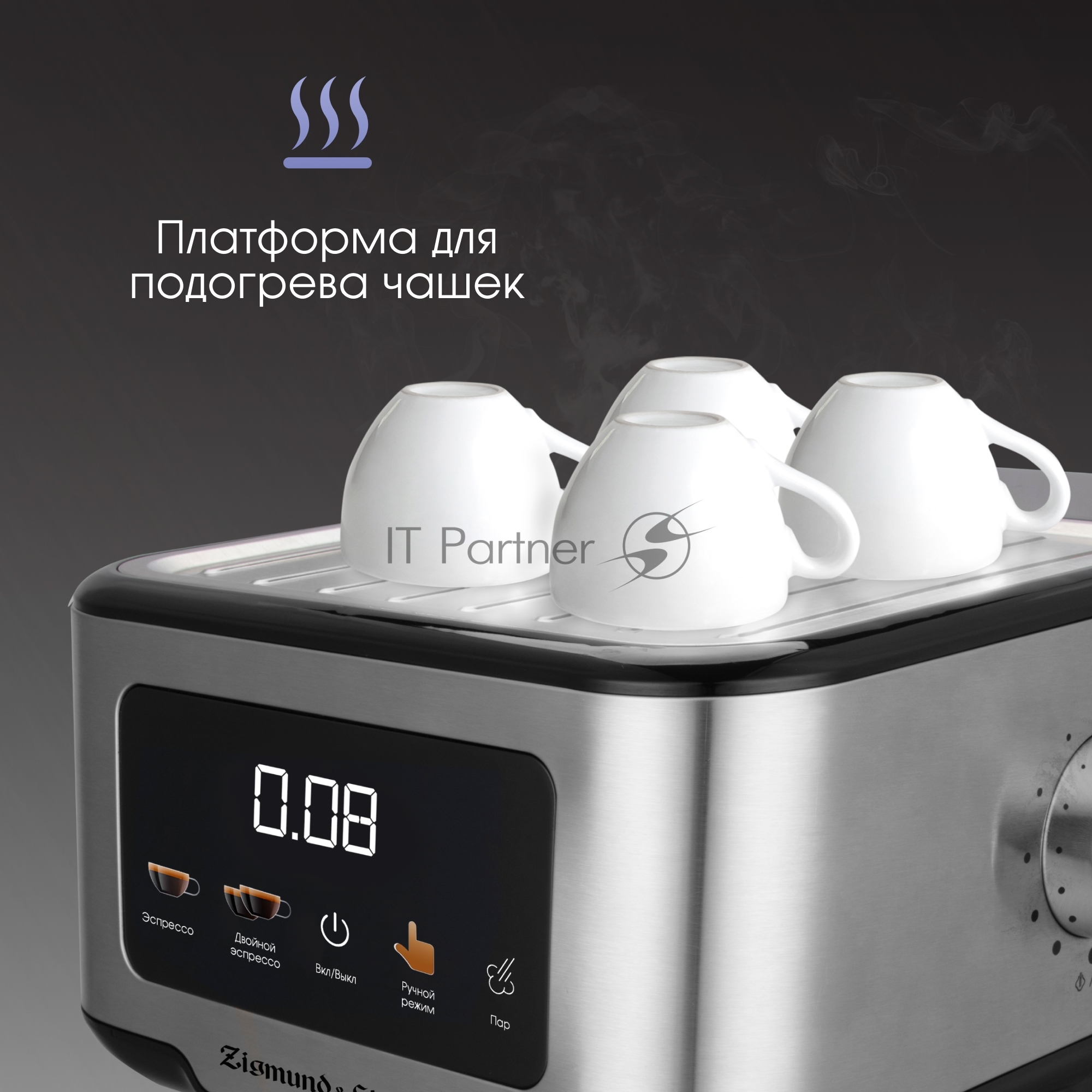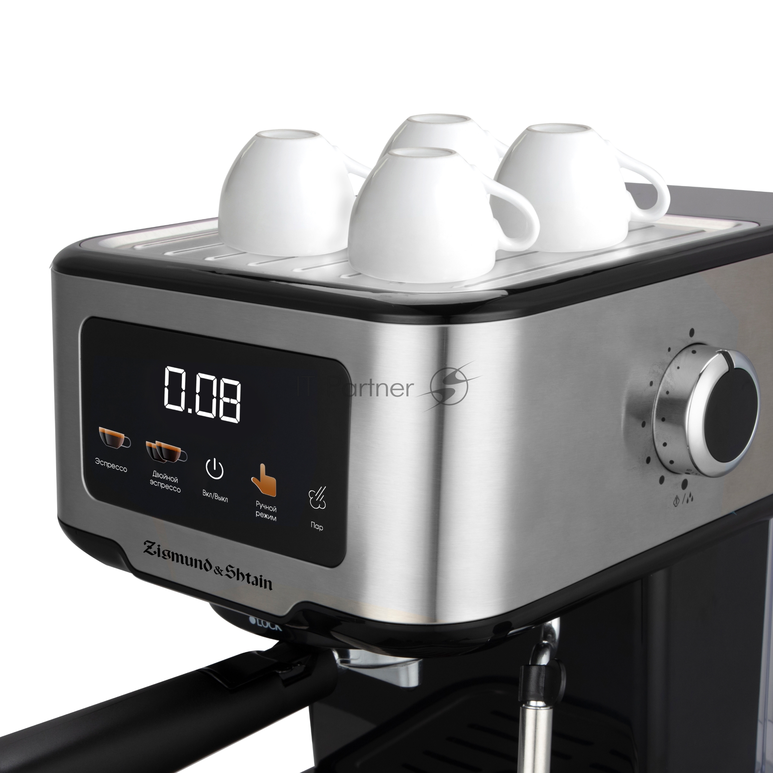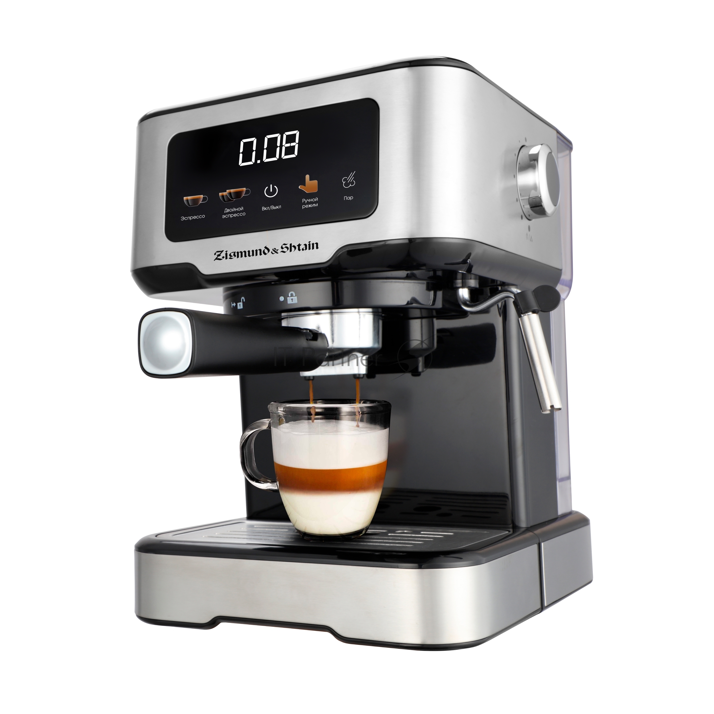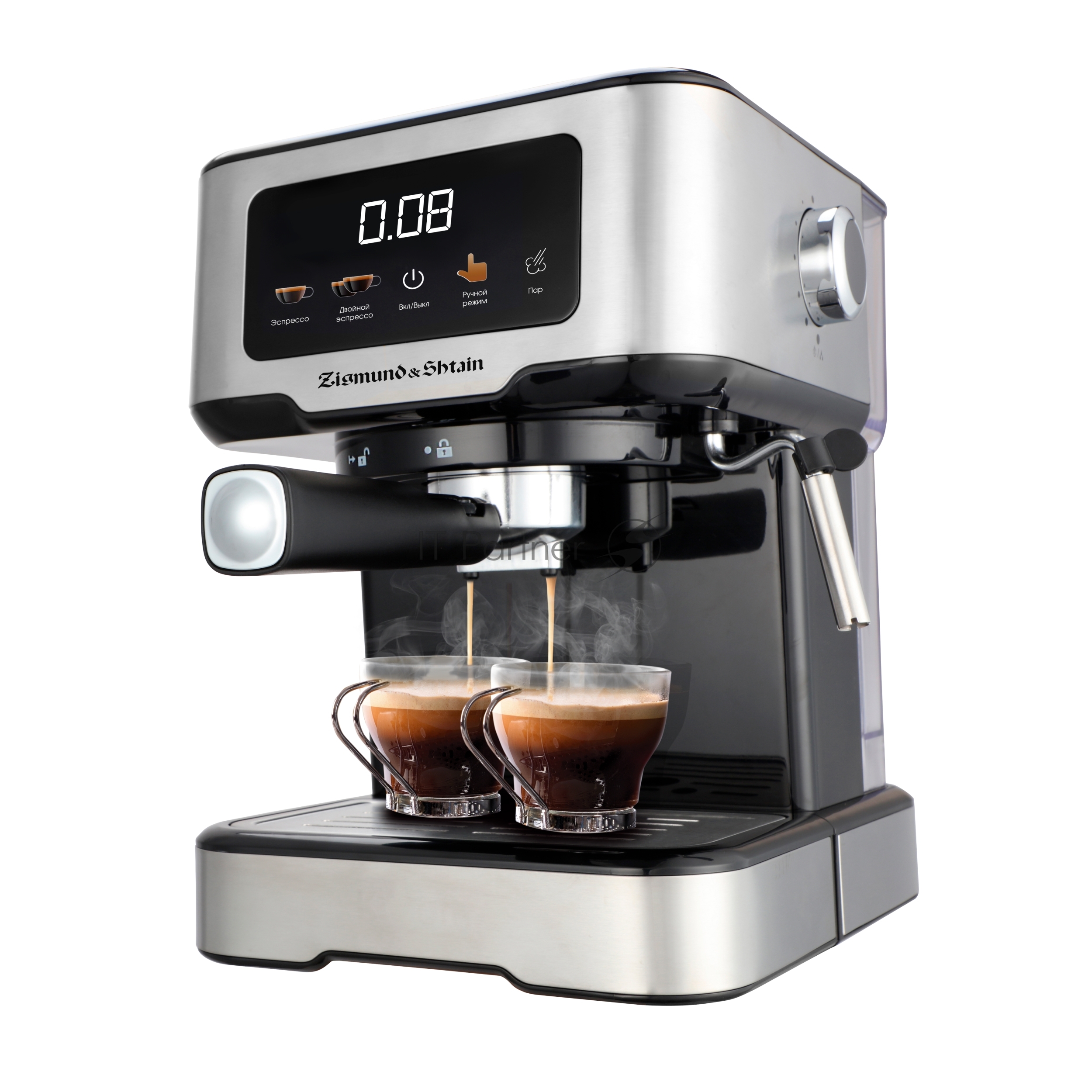 Кофеварка рожковая Zigmund & Shtain ZCM-883 стальной, исп. кофе — молотый, 1.5 л, 1200 Вт, 15 Бар.
