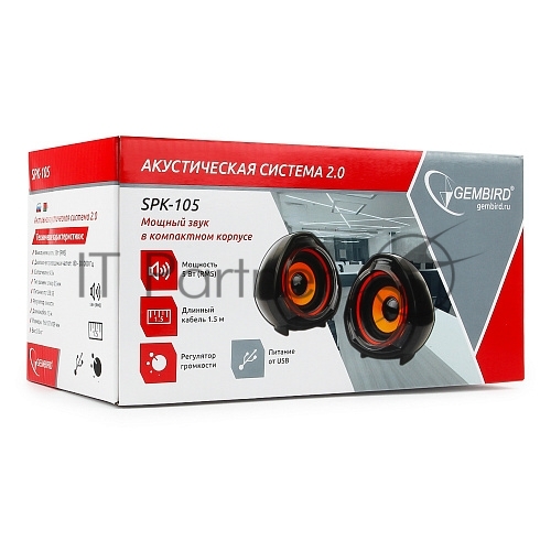 Колонки Акустич. система 2.0 Gembird SPK-105, черный, 5 Вт, регулятор громкости, USB-питание