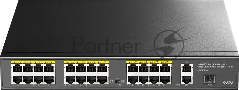 Коммутатор Cudy FS1026PS1, (L2) 24×100Мбит/с 2×1Гбит/с, 1SFP, 24PoE, 24PoE+ 300W, неуправляемый