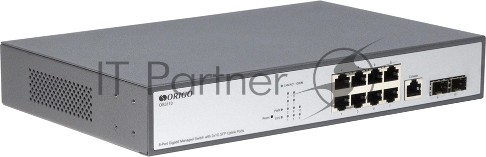 Коммутатор Managed L2 Switch 8x1000Base-T, 2x1000Base-X SFP, RJ45 Console, 19″ w/brackets