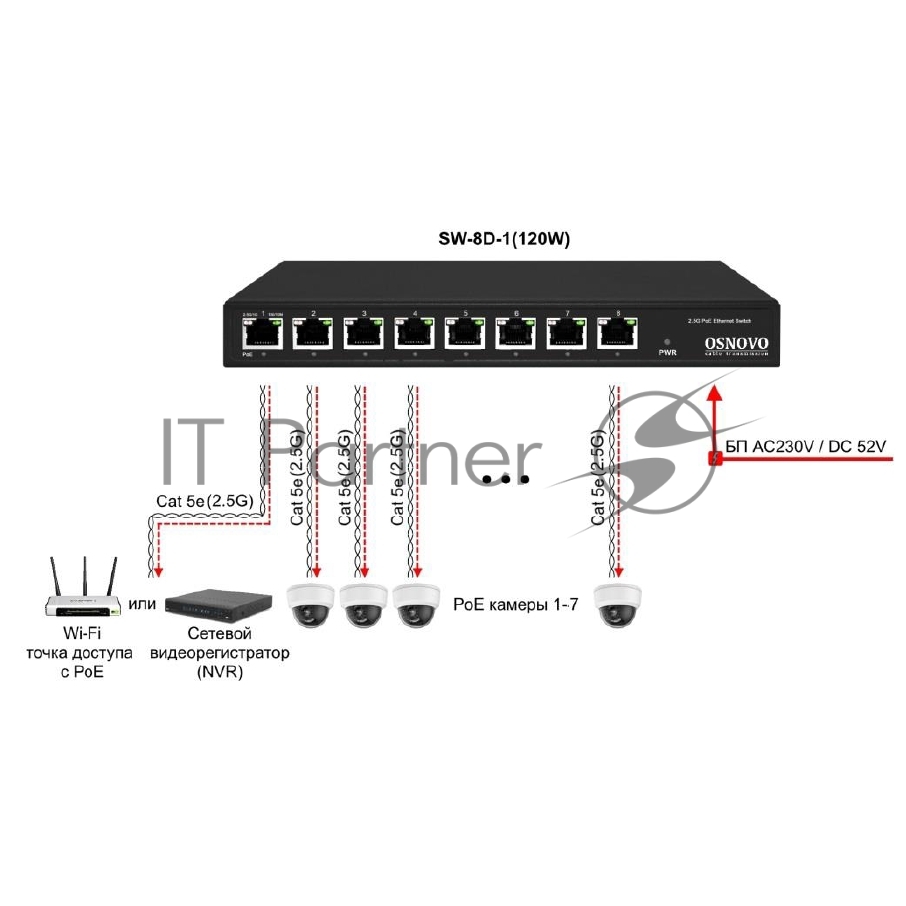 Коммутатор неуправляемый Osnovo SW-8D-1(120W)
