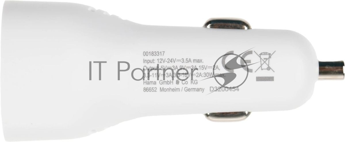 Комплект зарядное устройство Hama H-183317 3A PD для Apple кабель Apple Lightning/Type-C белый
