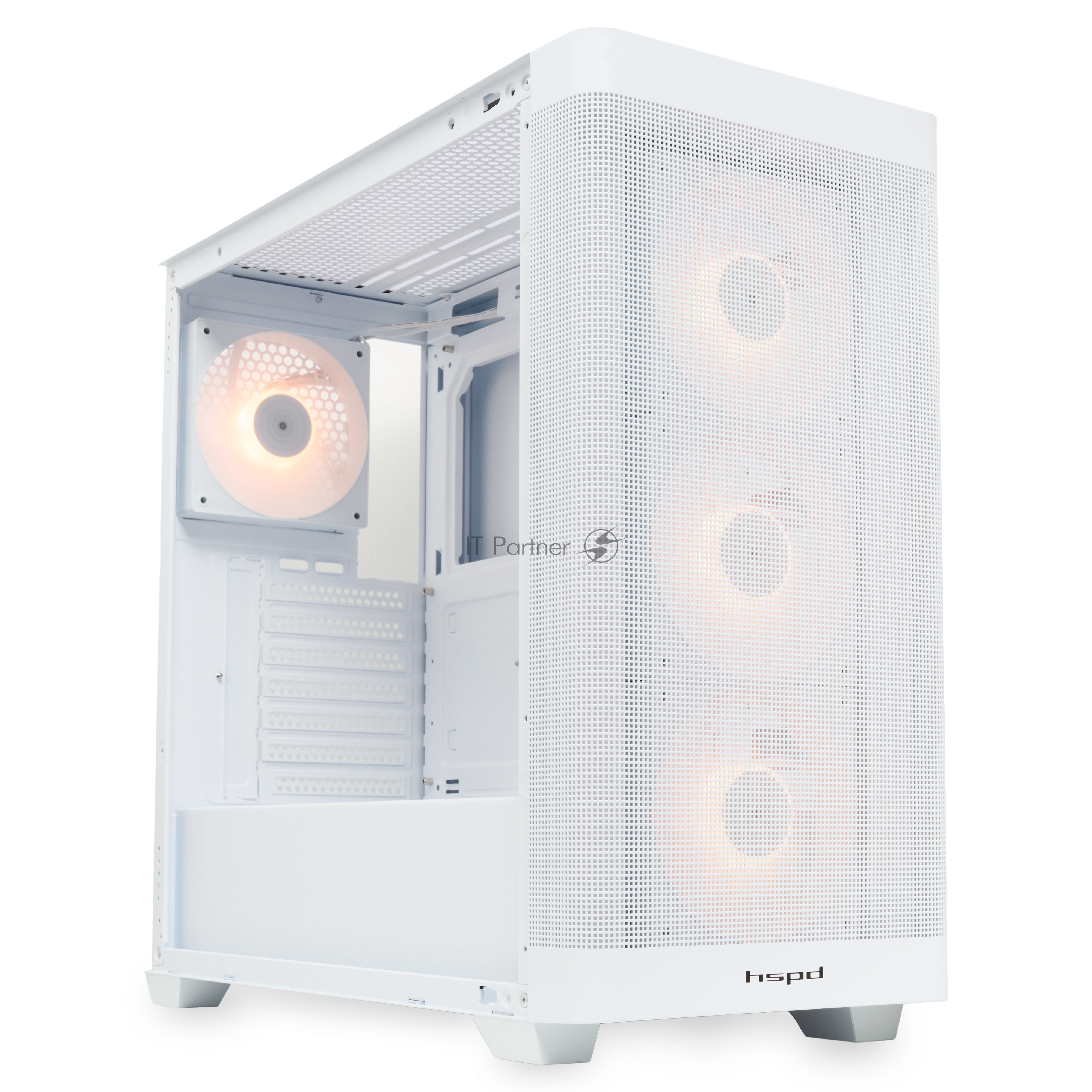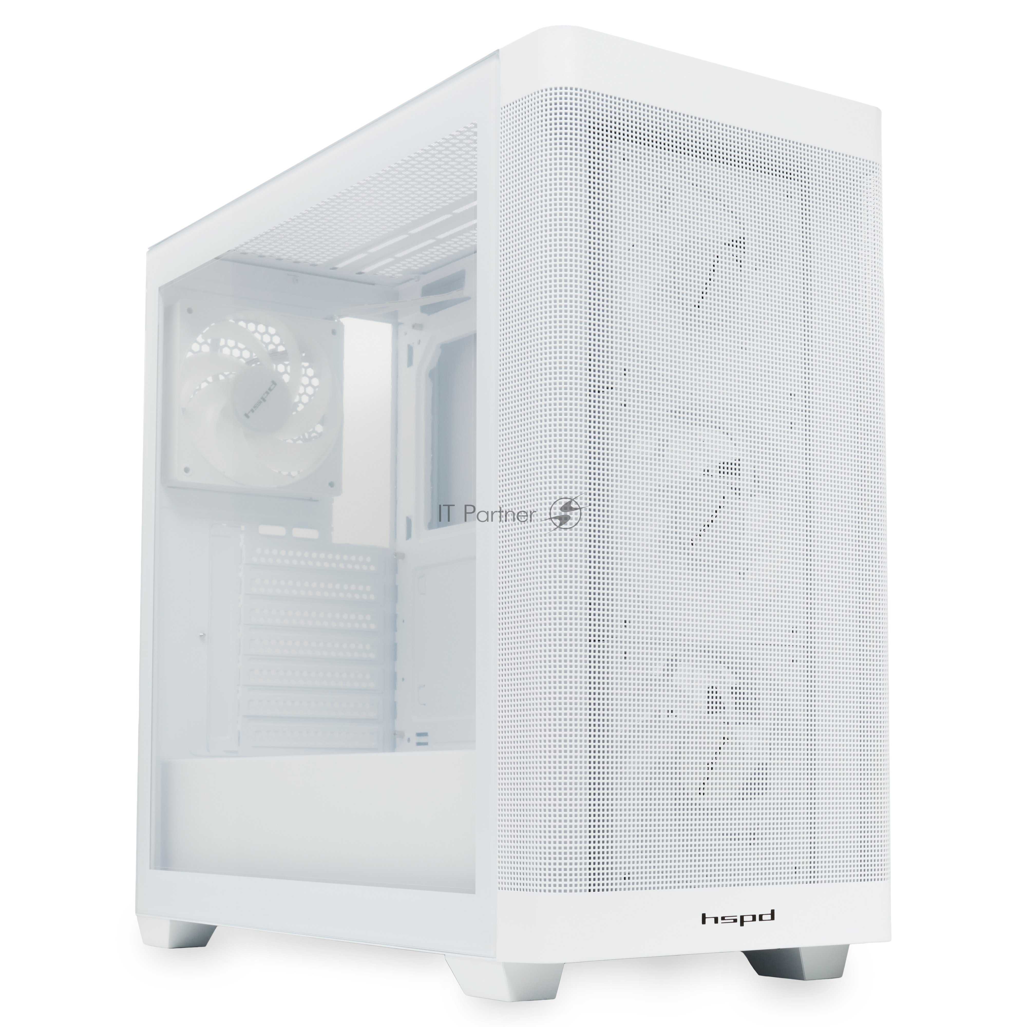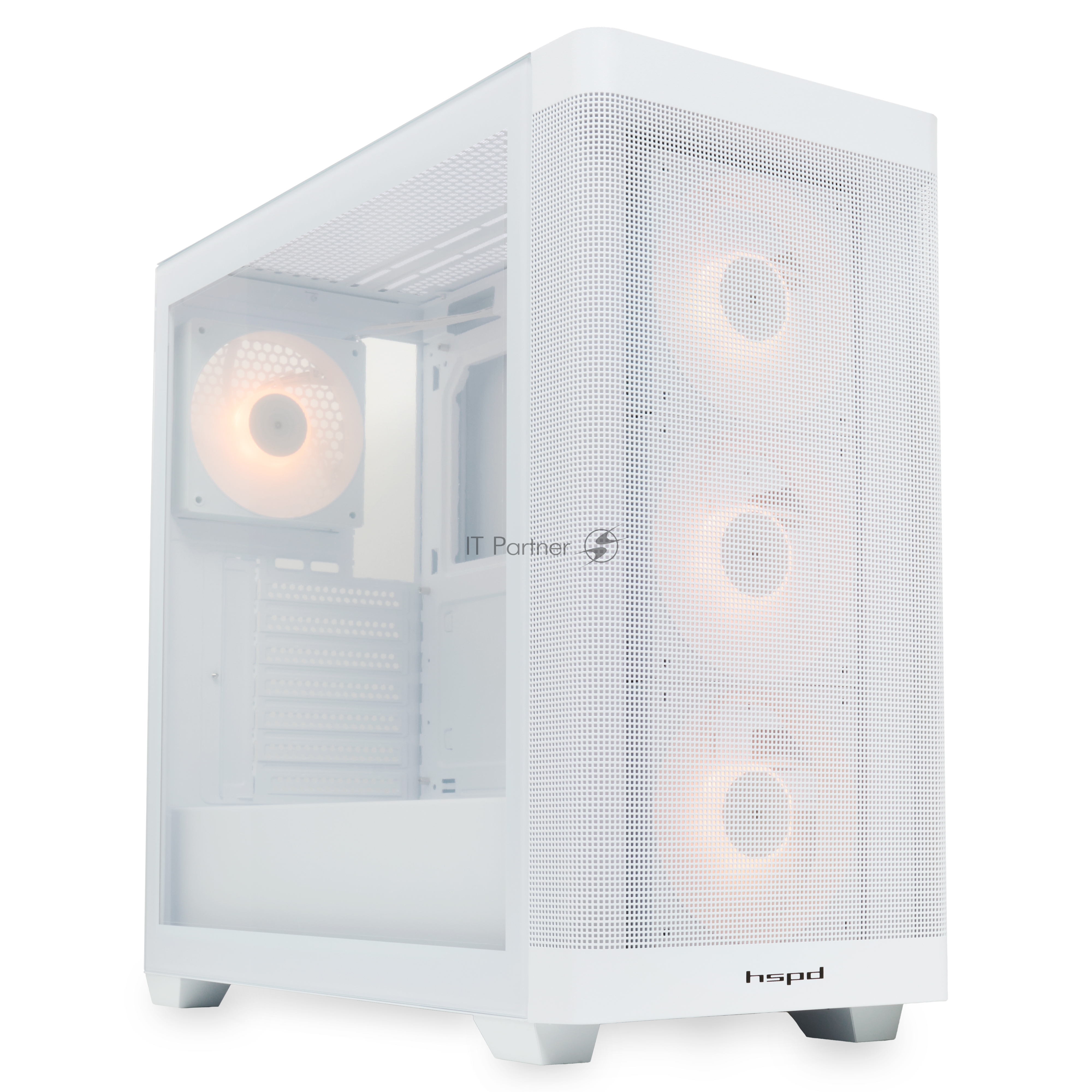 Компьютерный корпус HSPD M740, Mesh Mid Tower, белый, TG, 0.6 SPCC, 4x120mm ARGB E-ATX, ATX, mATX, mITX 170/400/200mm 4×2.5″, 2×3.5″, 7xPCI 1xUSB-A 3.0, 1xUSB-C 3.0 460x218x450mm