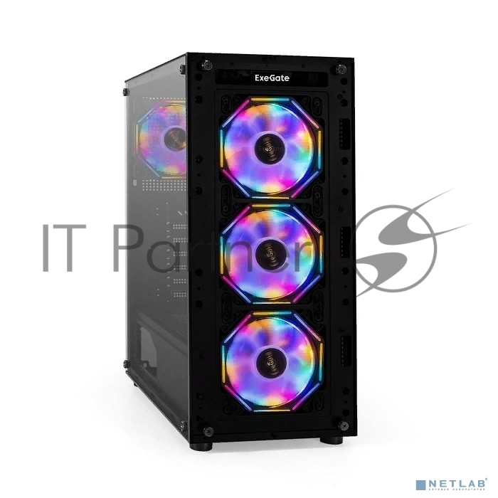 Компьютерный корпус Miditower ExeGate i3 BASE (ATX, без БП, с окном, 1*USB+1*USB3.0, аудио, 4 вент. 12см с RGB подсветкой)