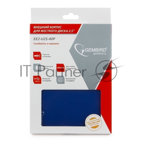 Контейнер для HDD Gembird EE2-U2S-40P-B Внешний корпус 2.5″ Gembird EE2-U2S-40P-B, синий, USB 2.0, SATA, пластик
