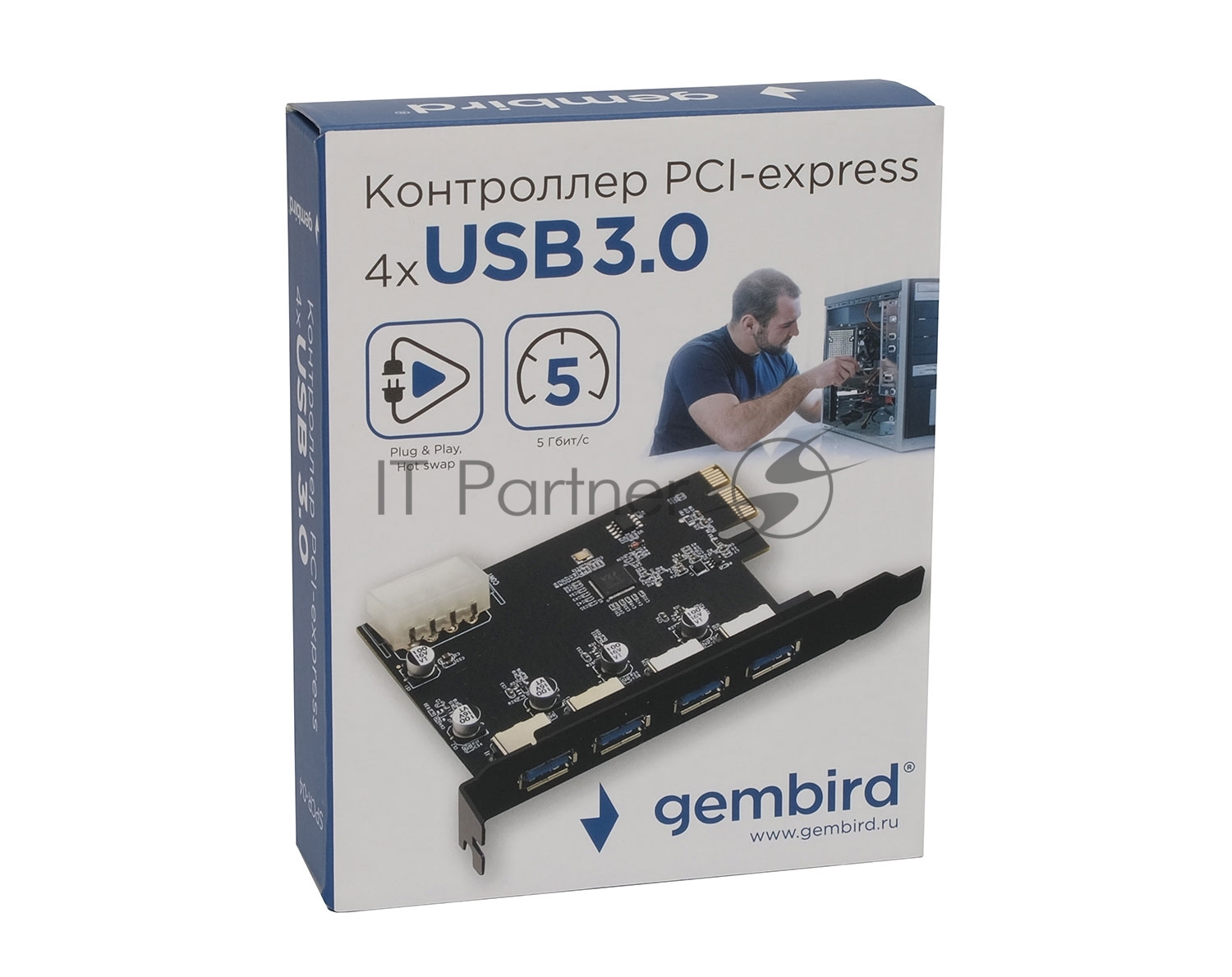 Контроллер USB 3.0 Gembird SPCR-04 в разъем PCI-e, 4xUSB-A