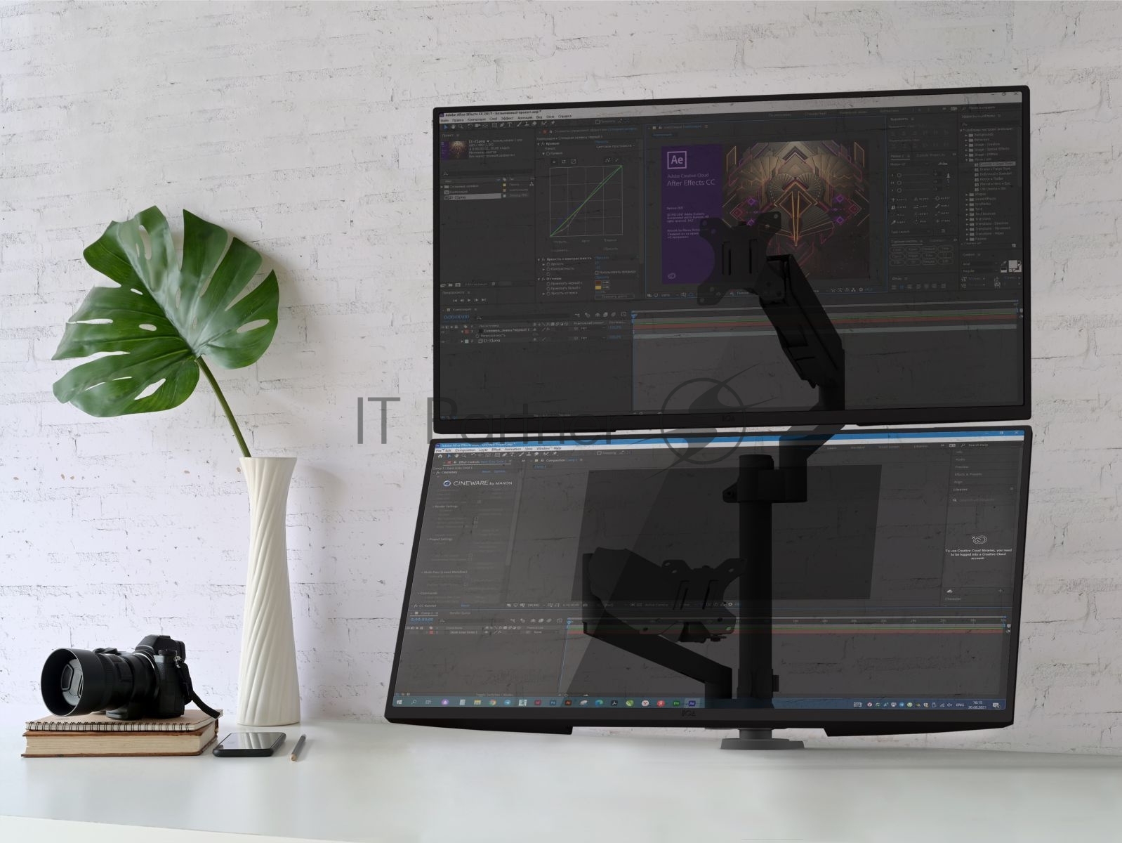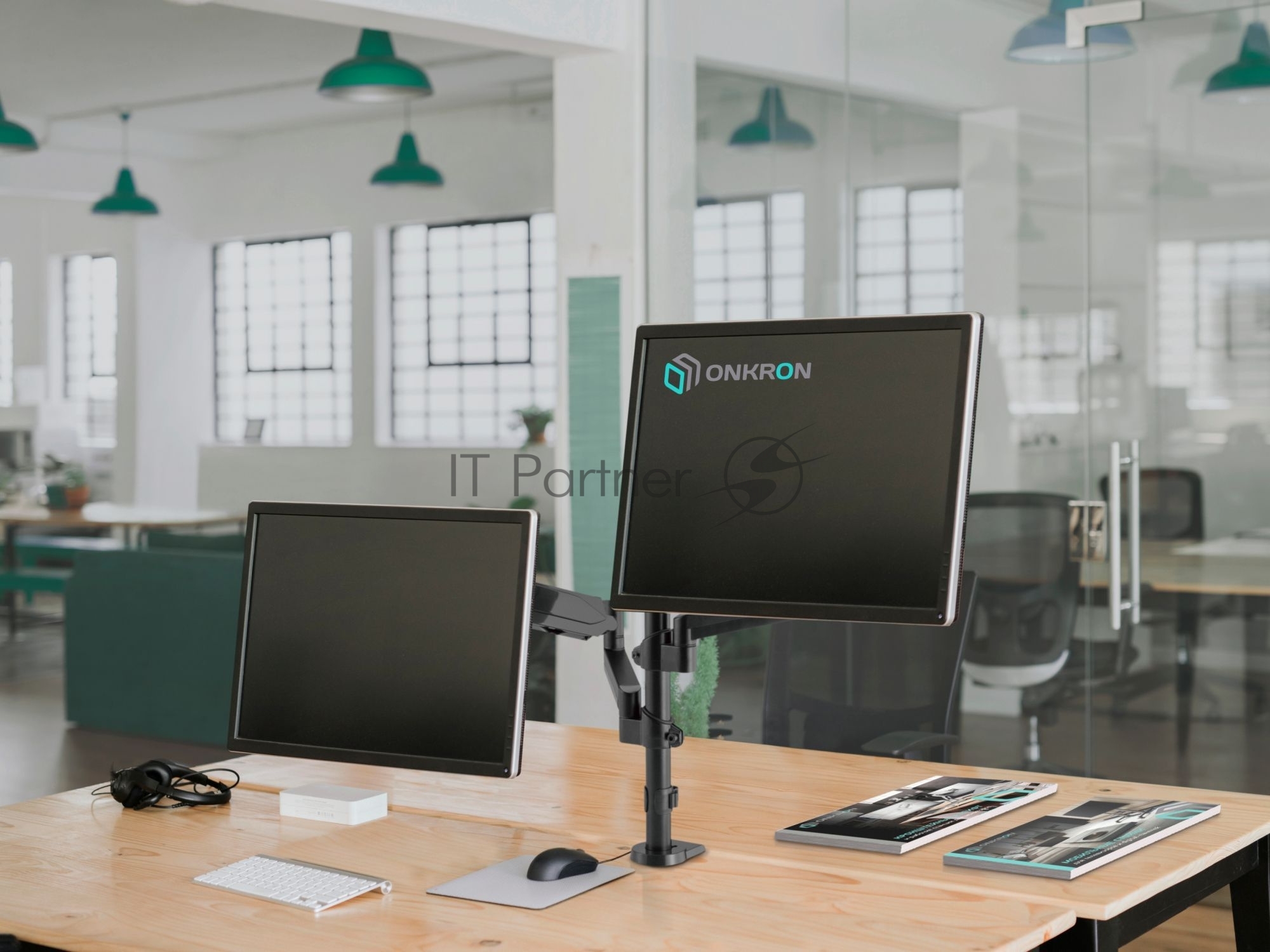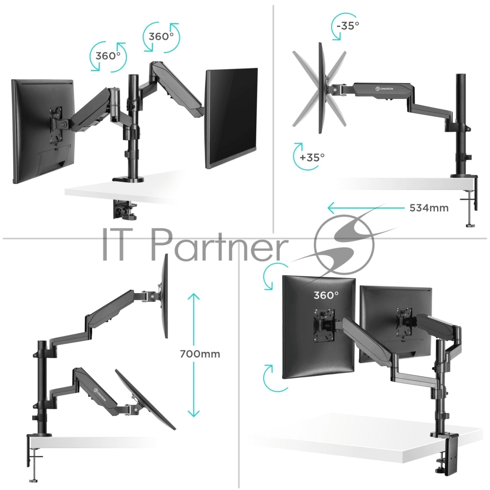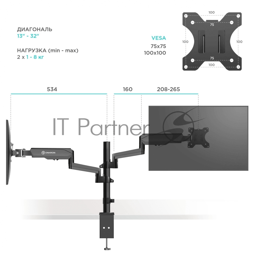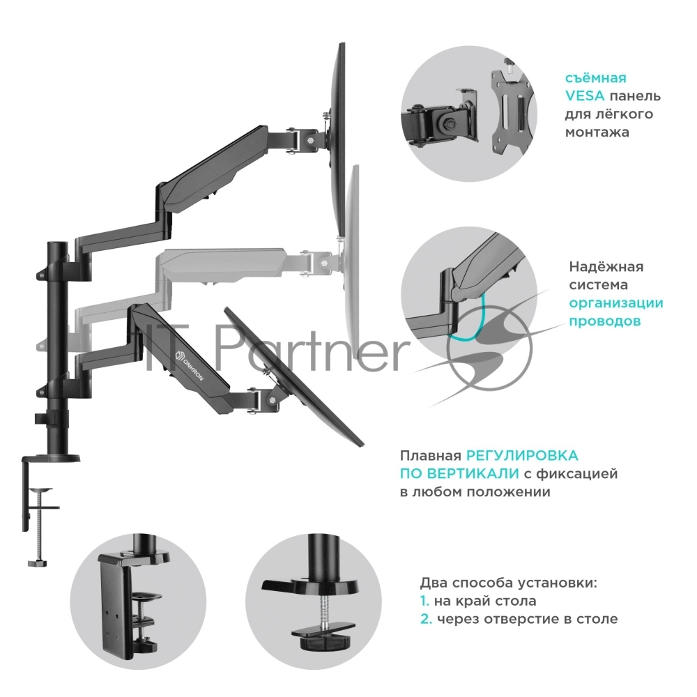 Кронштейн (держатель) ONKRON G140 для двух мониторов 13″-32″ дюймов настольный, черный