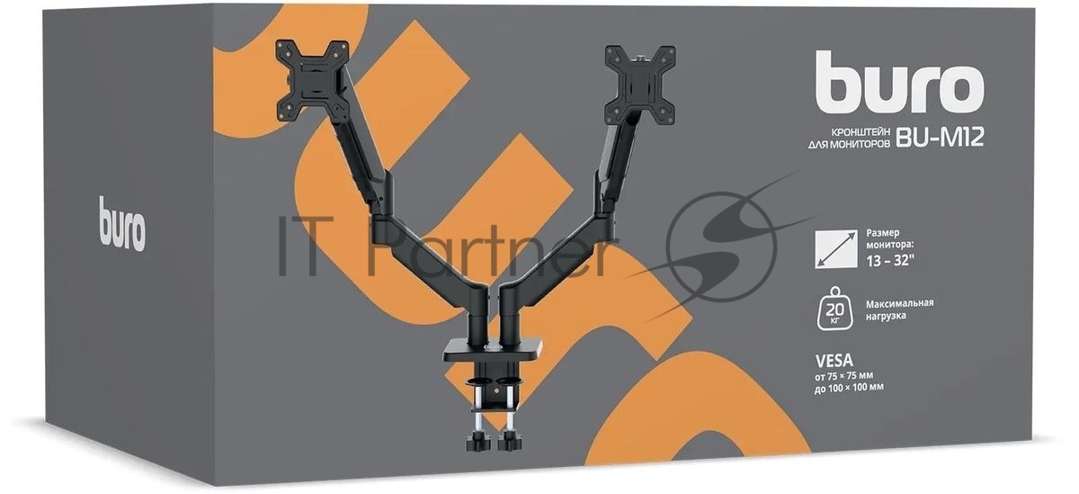 Кронштейн для мониторов ЖК Buro BU-M12 черный 17″-32″ макс.10кг крепление к столешнице поворот и наклон