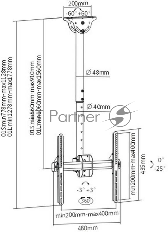 Кронштейн для телевизора Arm Media LCD-1700 черный 26″-65″ макс.55кг потолочный наклон