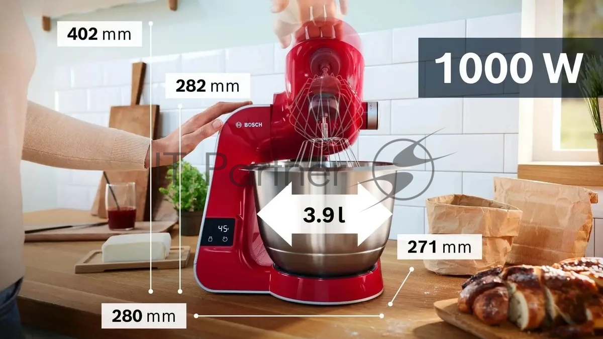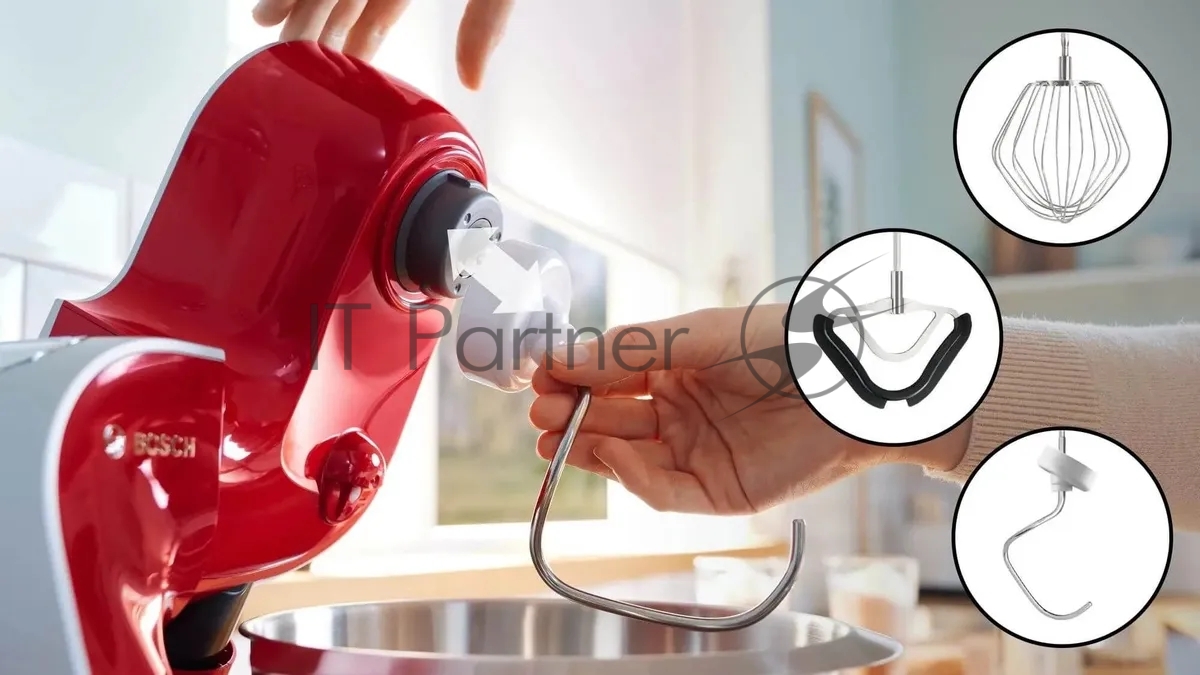 Кухонная машина Bosch MUM5X720 планетар.вращ. 1000Вт красный/серый