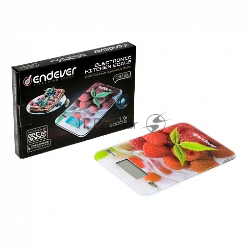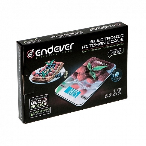 Кухонные весы Endever Chief-506 Цена деления — 1 г, Ситема мер в килограммах, граммах, ЖК дисплей.