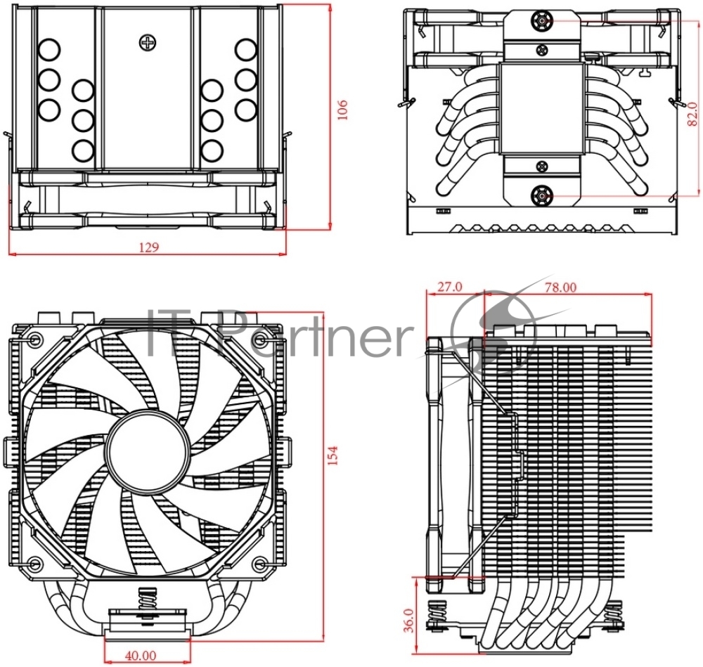 Кулер ID-COOLING SE-226-XT BLACK LGA1700/1200/115X/AM4 (8шт/кор, TDP 250W, PWM, 6 тепл.трубкок + медная база, FAN 120mm, черный) RET