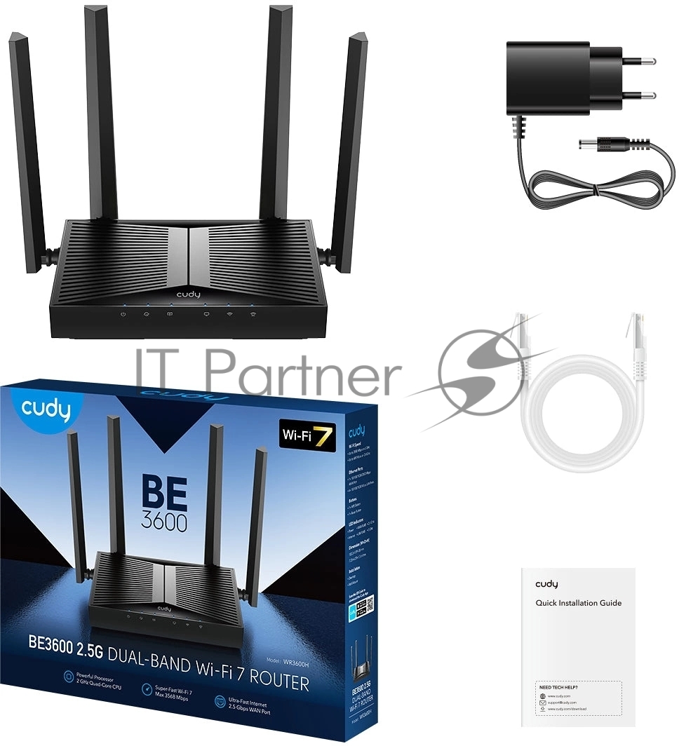 Маршрутизатор Cudy BE3600 2.5G Dual Band Wi-Fi 7 Mesh Router, Chipset Broadcom, 802.11be/ax/ac/a/b/g/n, 2882Mbps at 5GHz + 688Mbps at 2.4GHz, 1 x 2.5Gbps WAN Port, 4 x 10/100/1000Mbps Ports, 4 x 5dBi fixed antennas, WiFi router/AP/ Repeater/WISP Mode, PPTP/L2TP/OpenVPN/WireGuard, MLO, MU-MIMO, Guest network, WPS, DDNS, IPv6, IPTV, WOL, WPA3, TR069/TR098/TR111/TR181, Cudy APP