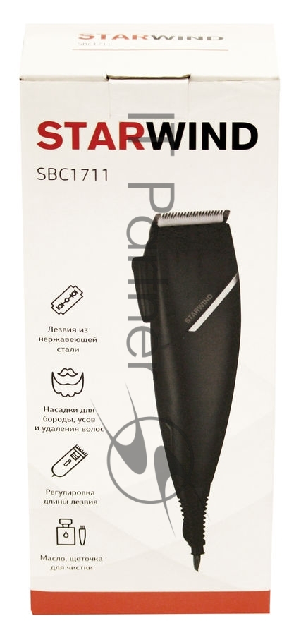 Машинка для стрижки Starwind SBC1711 черный/серебристый 3Вт (насадок в компл:4шт)
