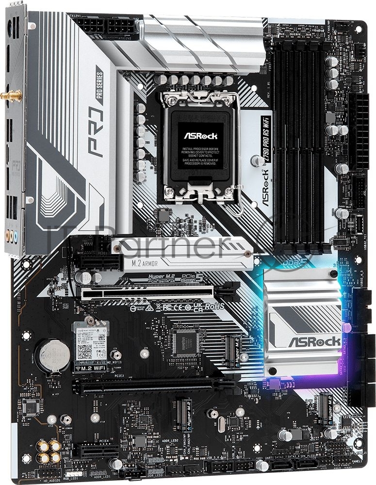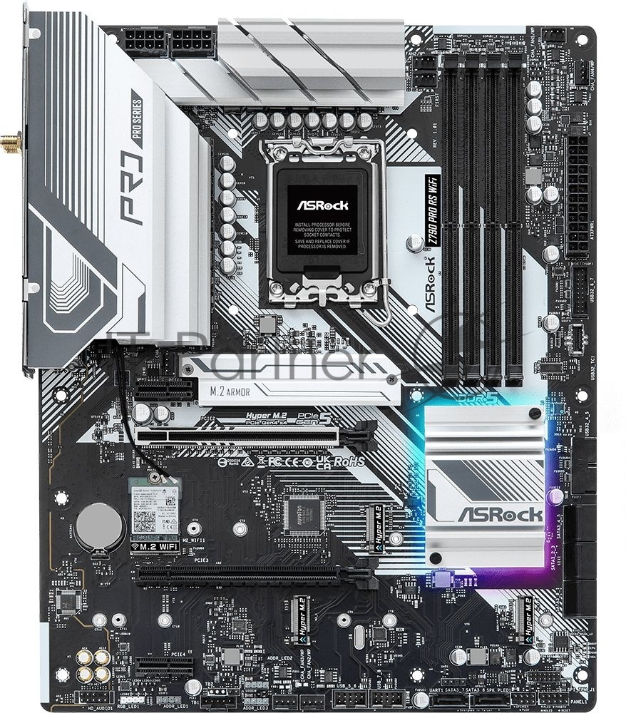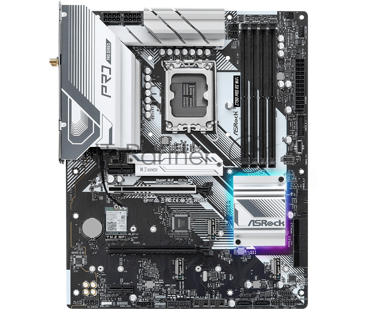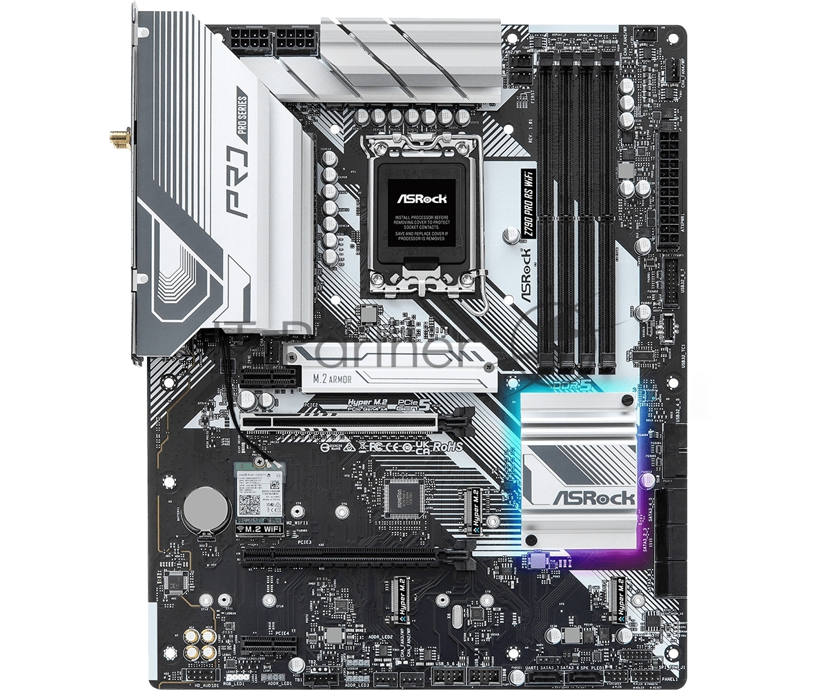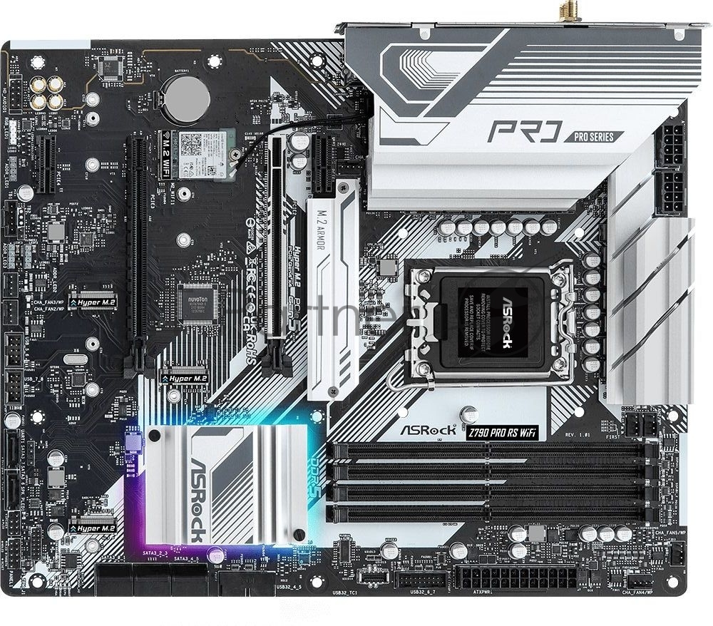 Материнская плата ASRock Z790 Pro RS, LGA 1700, Intel Z790, 4xDDR5, 8xSATA, 4xM.2, 1xPCI-E 5.0 x16, 1xPCI-E 4.0 x16, 2xPCI-E x1, 1xHDMI, 1xDP, 1x 2.5Gb LAN, 4xUSB-A 2.0, 2xUSB-A 3.2 Gen 1, 1xUSB-A 3.2 Gen 2, 1xUSB-C 3.2 Gen 2, 3×3.5 мм, 7.1, ATX