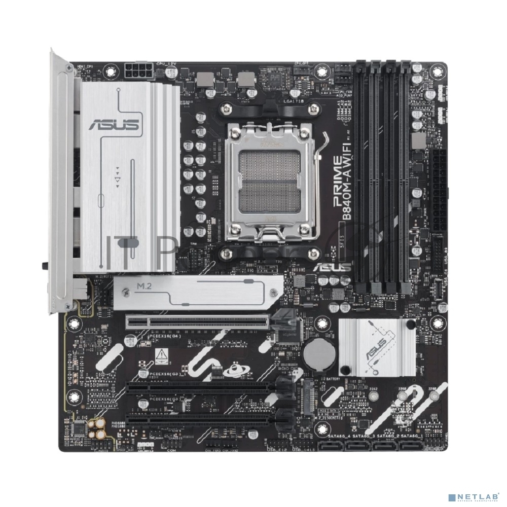 Материнская плата ASUS PRIME B840M-A WIFI, AM5, AMD B840, 4xDDR5, 4xSATA III, 3xM.2, 1xPCI-E 4.0 x16, 2xPCI-E 3.0 x16 (x1), 2xDP, 1xHDMI, 1x 2.5Gb LAN, Wi-Fi 6E, 2xUSB-A 10Gbps, 1xUSB-C 5Gbps, 4xUSB-A 2.0, 3×3.5 мм, 7.1, micro-ATX